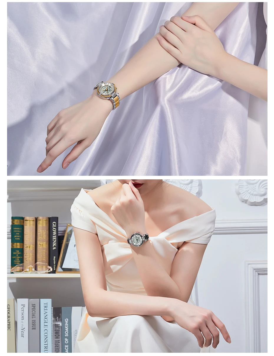 Часы женские, стальные, с браслетом, белые, черные