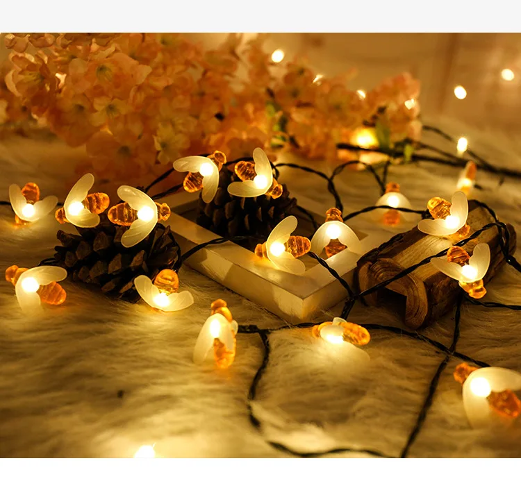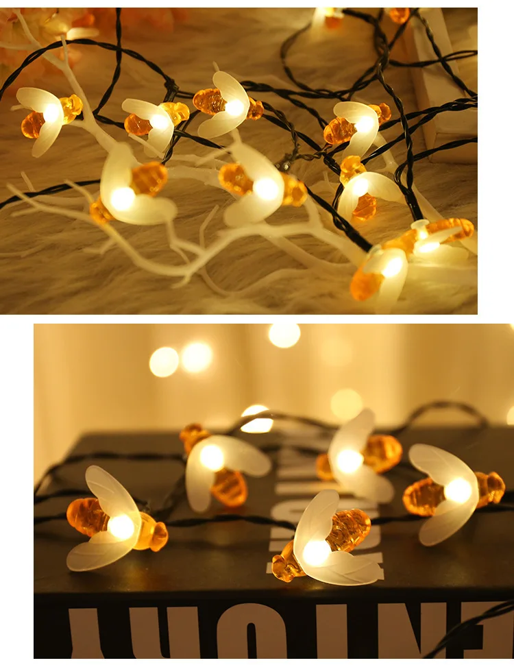 Светодиодная гирлянда с пчелами на солнечной батарее, уличная Водонепроницаемая садовая Гирлянда для свадьбы, вечеринки, праздничное освещение, украшение