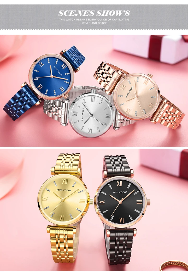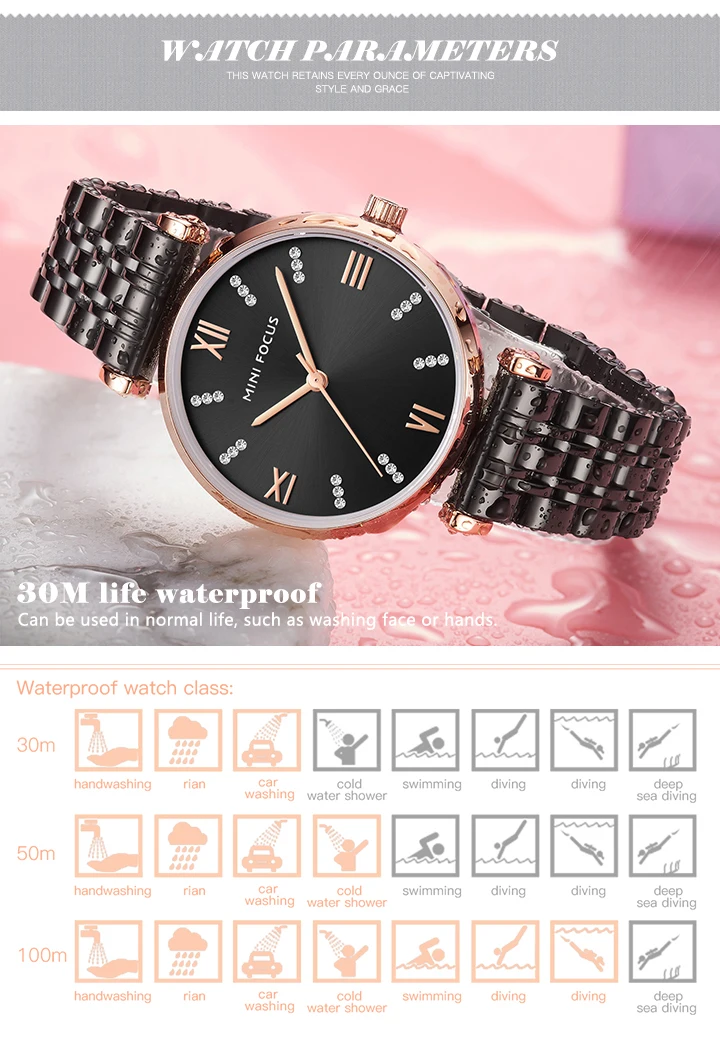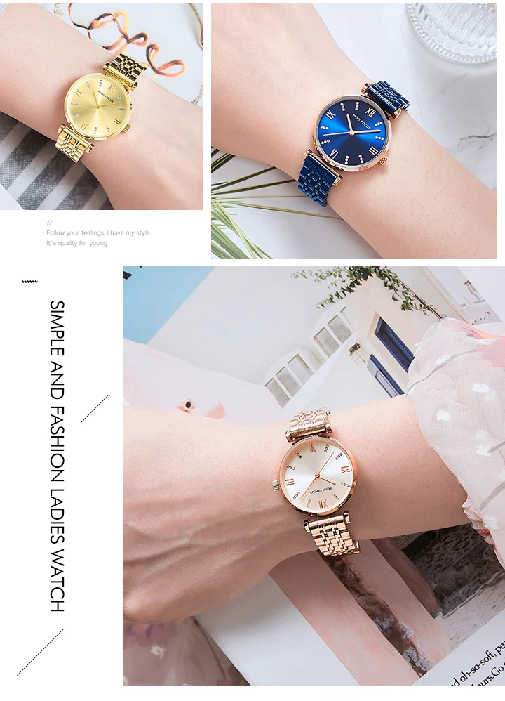 Часы женские кварцевые с ремешком из нержавеющей стали, водонепроницаемые