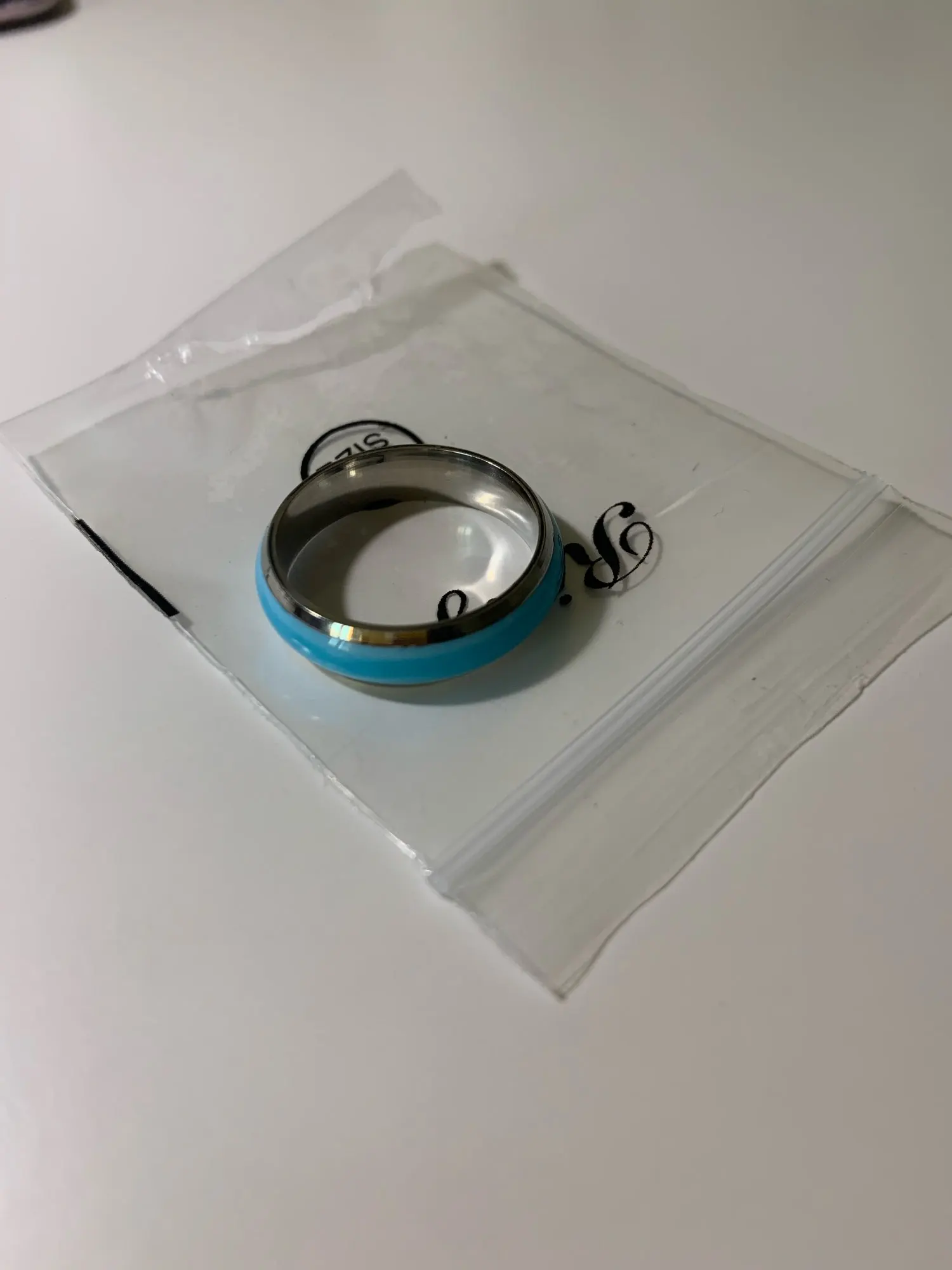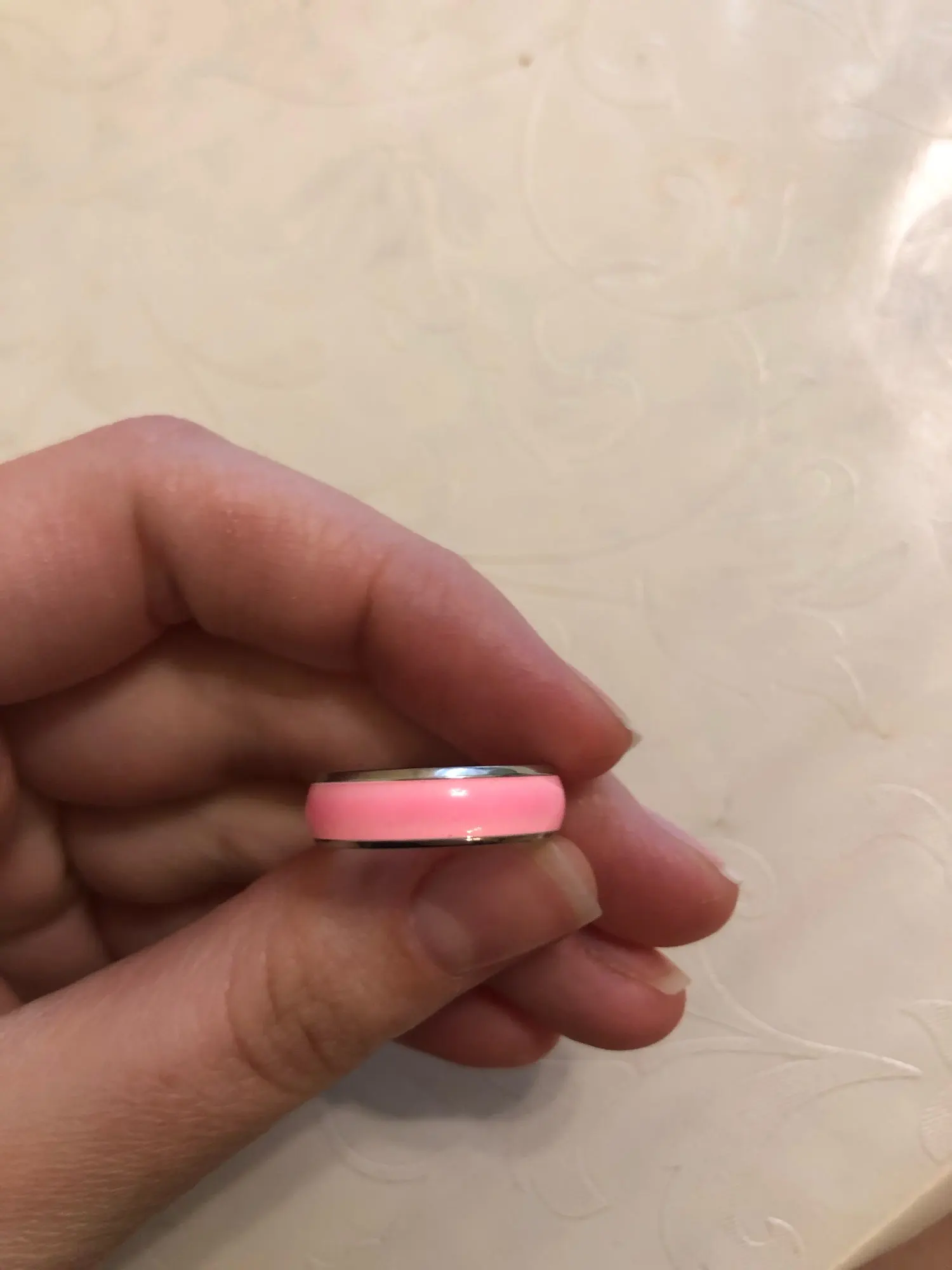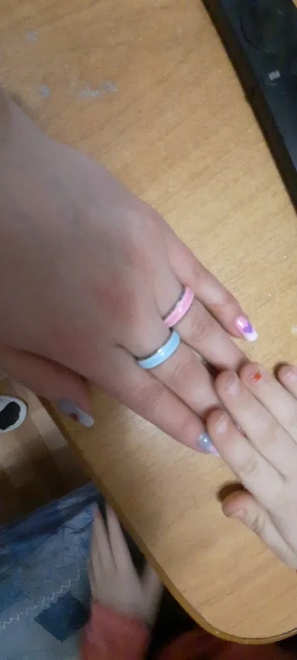 Колечки соответствуют описанию Продавца, сделаны очень аккуратно, легкие, на пальце сидят комфортно, в темноте светятся)). Сначала я купила нежно-голубое, оно мне понравилось, следом заказала и розовое. Размер 7 соответствует нашему 17,5. Доставили быстро, в составе сборной посылки.