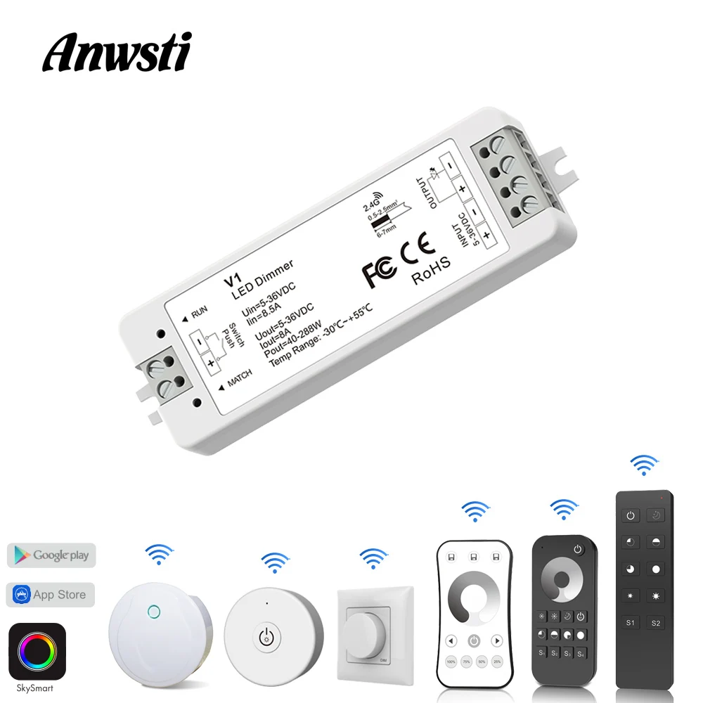 Wi-Fi светодиодный регулятор яркости, 12 В, 24 В, ШИМ, 2,4 ГГц, сенсорный радиочастотный беспроводной пульт дистанционного управления 5 В, 36 В, умный Wi-Fi регулятор яркости для одноцветной светодиодной ленты