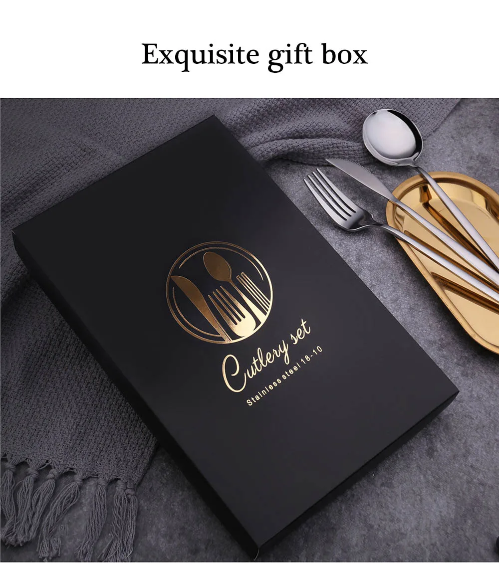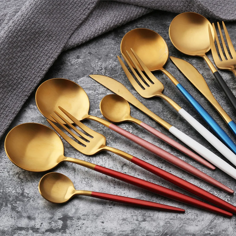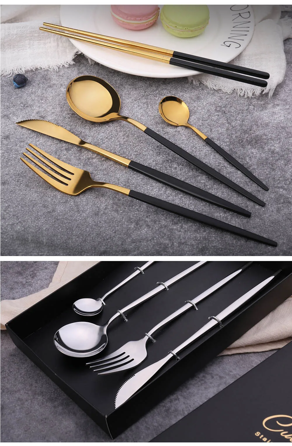 Посуда изготовлена из высококачественной нержавеющей стали, которая является прочной и не ржавеет. Ручки краски не должны быть очищены с помощью проволоки/грубой очистки колодки. Не используйте сильные коррозионные чистящие средства для сушки посуды. Подходит для семьи, вечеринок, гостиниц, ресторанов, подарков, дней рождения, походов на кемпинг.