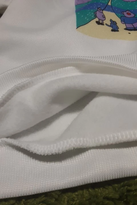 Блин, толстовка пришла вся в каких-то пятнах, некоторые очень едкие и не знаю отстираются ли(( Снизу много ниток торчит, фабричный запах. Качество принта хорошее, ткань довольно плотная...