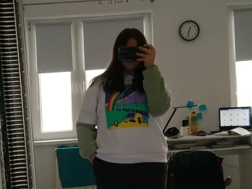 худи балдёж пришло за три недели кста но есть минусы первое это то что материал какой-то отстойный и вонял оч сильно но вроде запах прошёл. ещё я заказала L на рост 160 и лоханулась (хотела что б оно было побольше) короче советую заказывать либо хл либо ххл, ну а так ваще крутое балдёжное и теплое и расческу подарили спс ваще кайф. посмотрите какая я приколдэсная и поставьте лайк всем добра позитива счастья