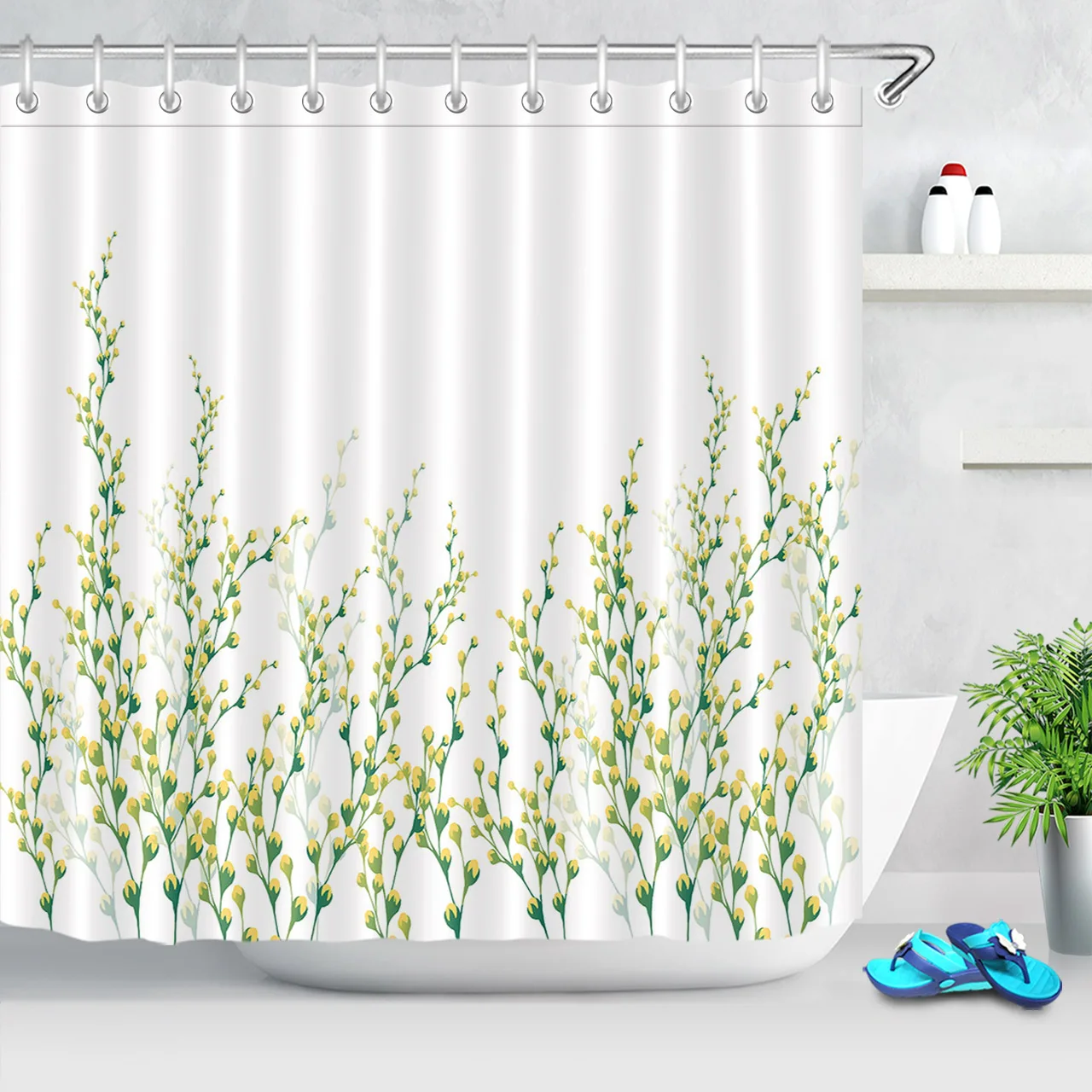 Весенние Зеленые растения, занавески для душа, ванная комната, водонепроницаемая полиэфирная ткань, занавески для душа, зеленые листья с принтом, занавески для ванной комнаты