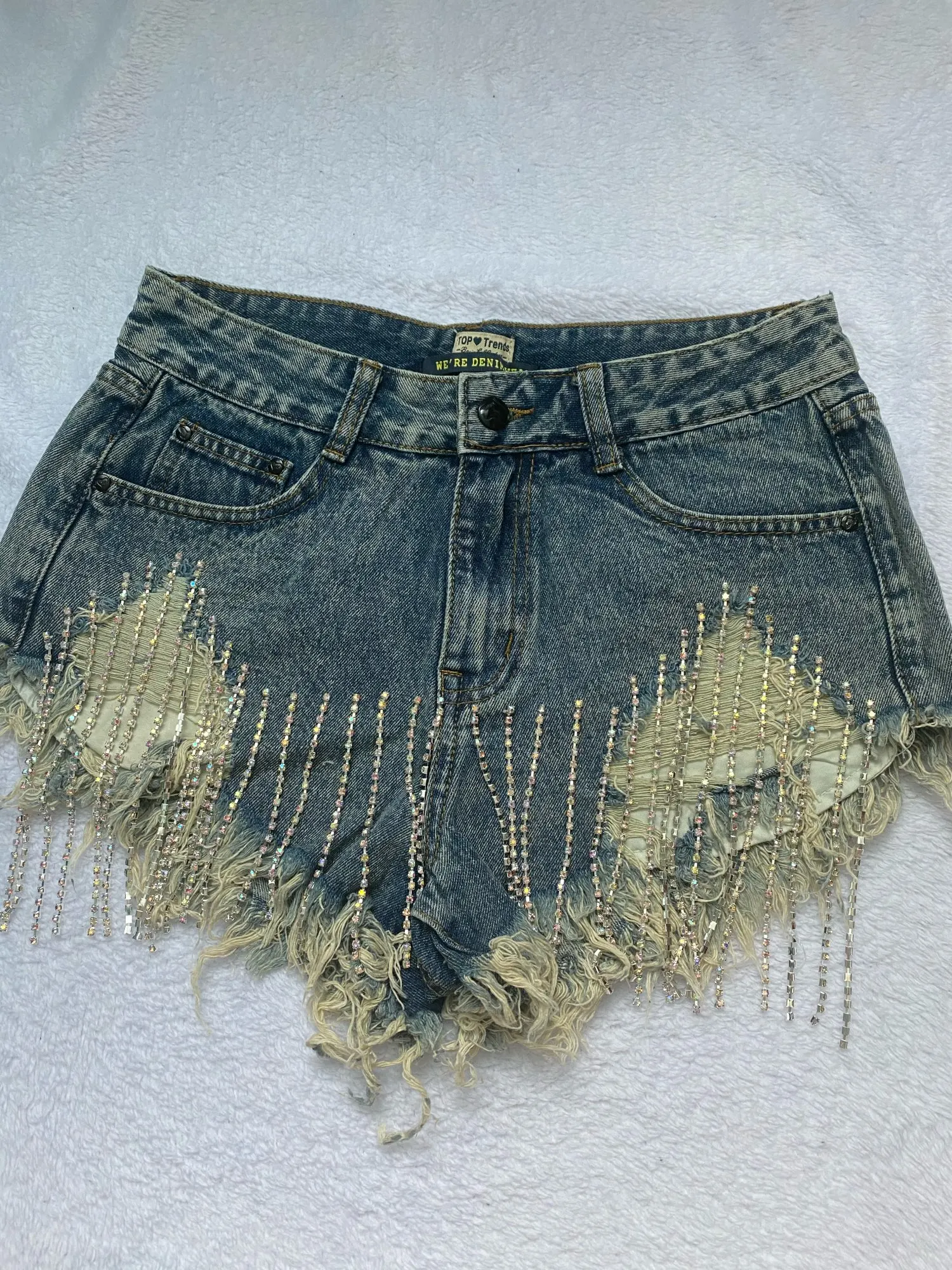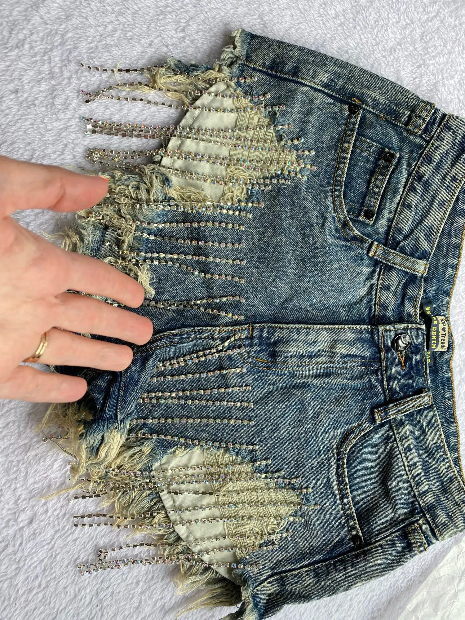 Размер подошёл на 46. На фото выглядит подлиннее. Еле попу прикрывает. Стразы можно было почаще пришить.