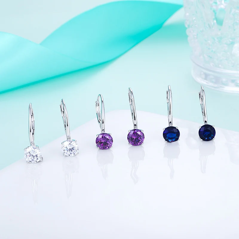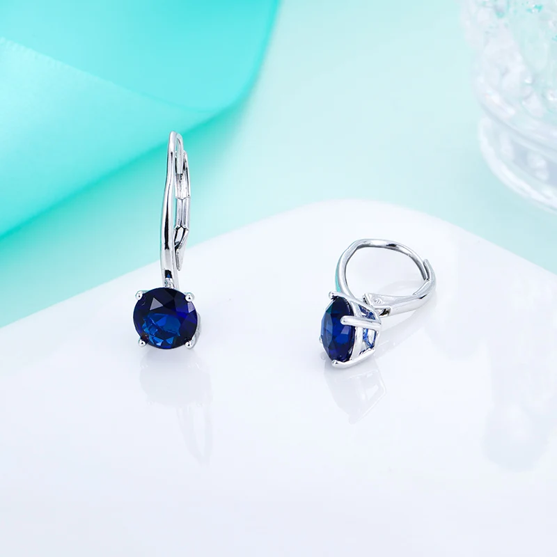 Серьги-гвоздики женские круглые, с фианитами, красные, синие, черны...