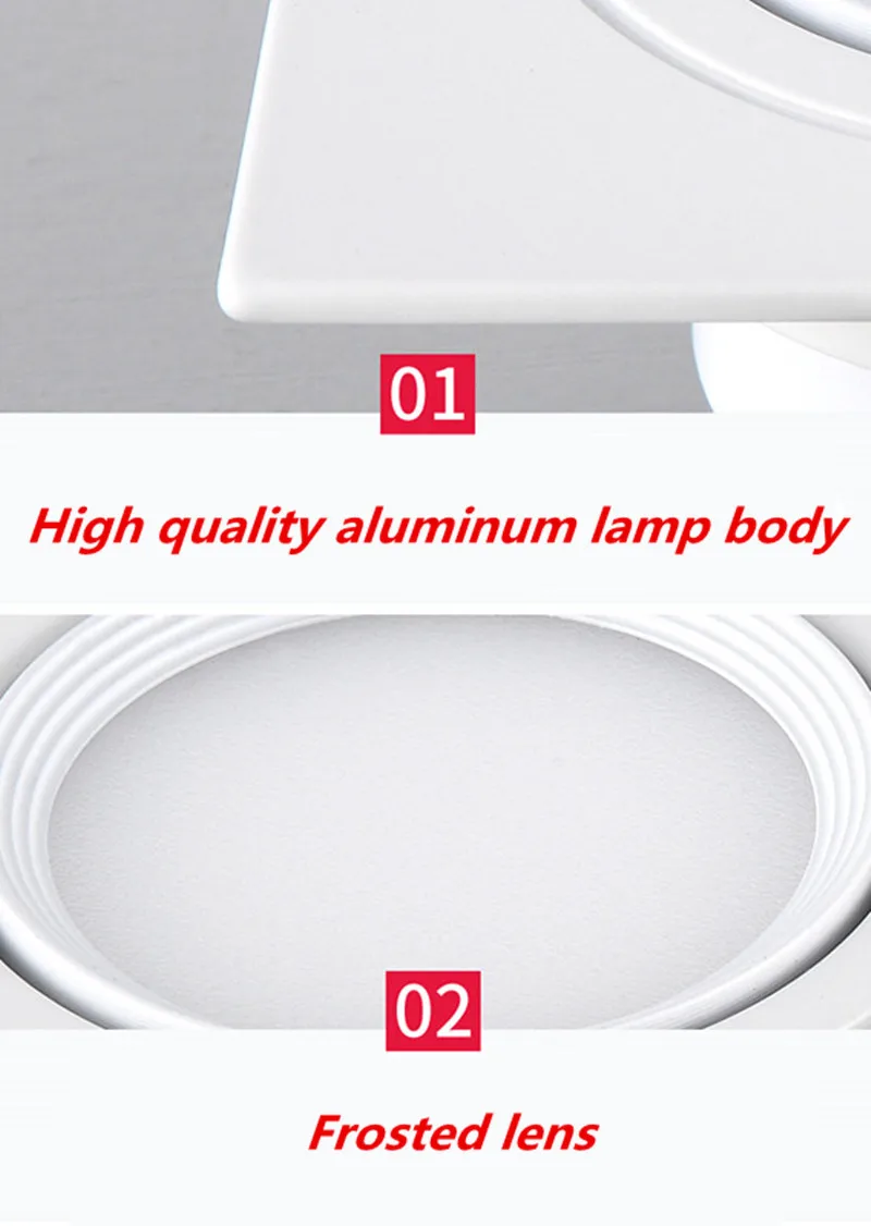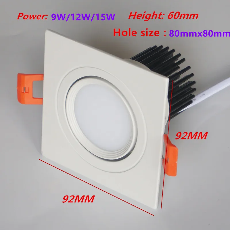 Квадратные встраиваемые потолосветодиодный светильники, светодиодные светильники, комнатное освещение с AC90-260V, 4 типа, 9 Вт, 12 Вт, 15 Вт, точечные светильники COB
