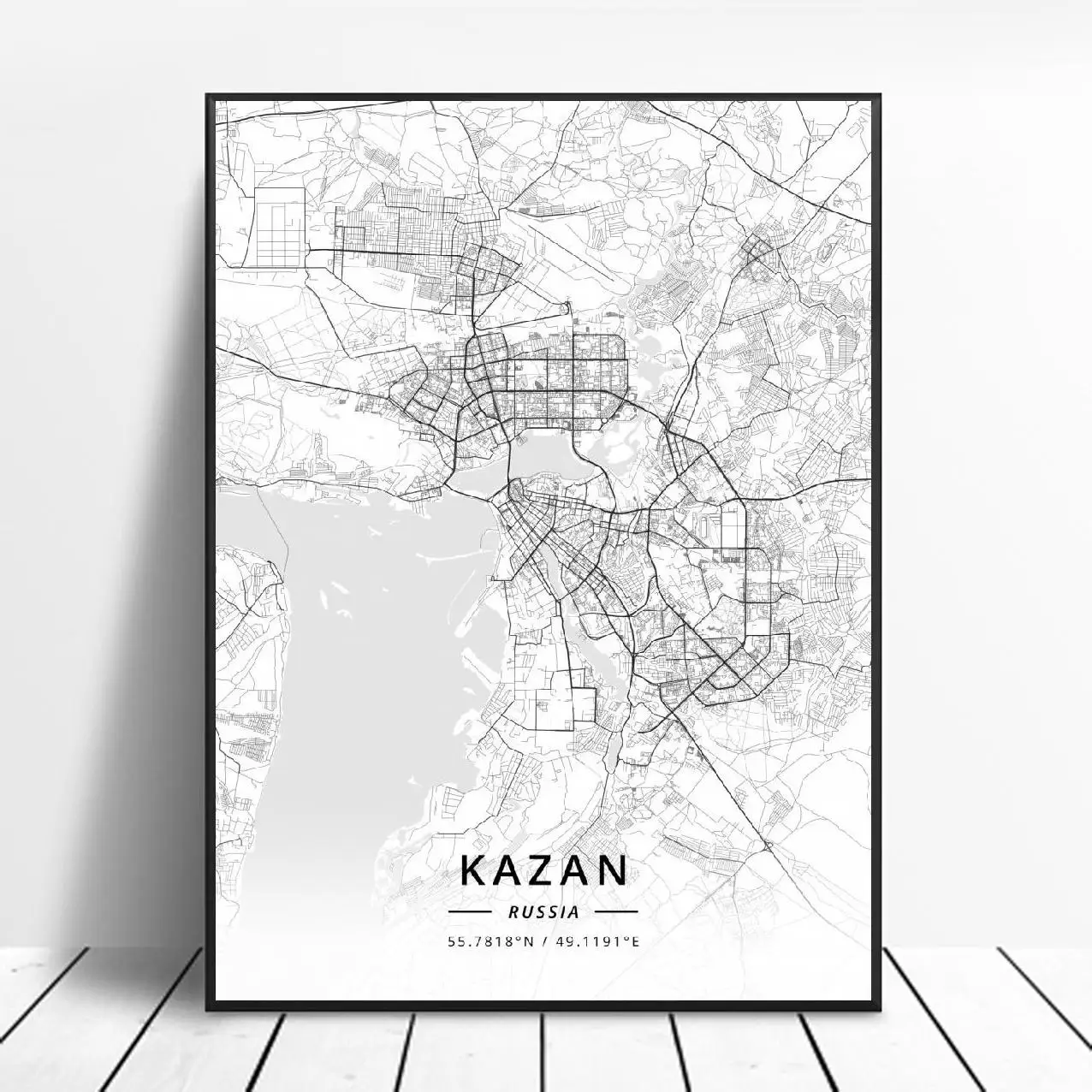 Челябинск Москва Новосибирск Красноярск Нижегородская Казань Россия на холсте карта Плакат