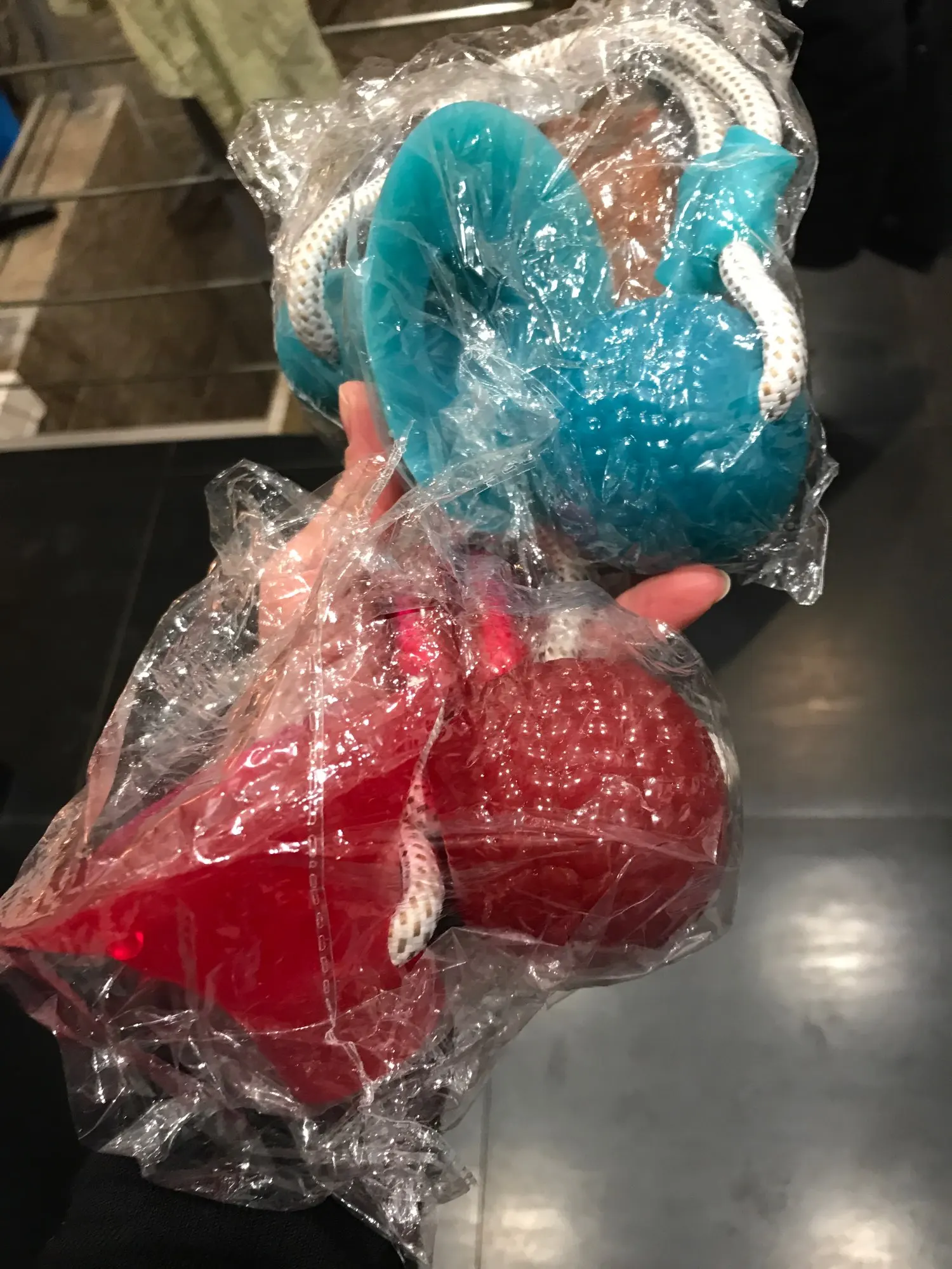 Игрушка неплохая, правда собаку пока не заинтересовала. Но не воняет и выглядет как на картинке. Доставка до мск 1,5 месяца, приехал консолидировано с остальными заказами.