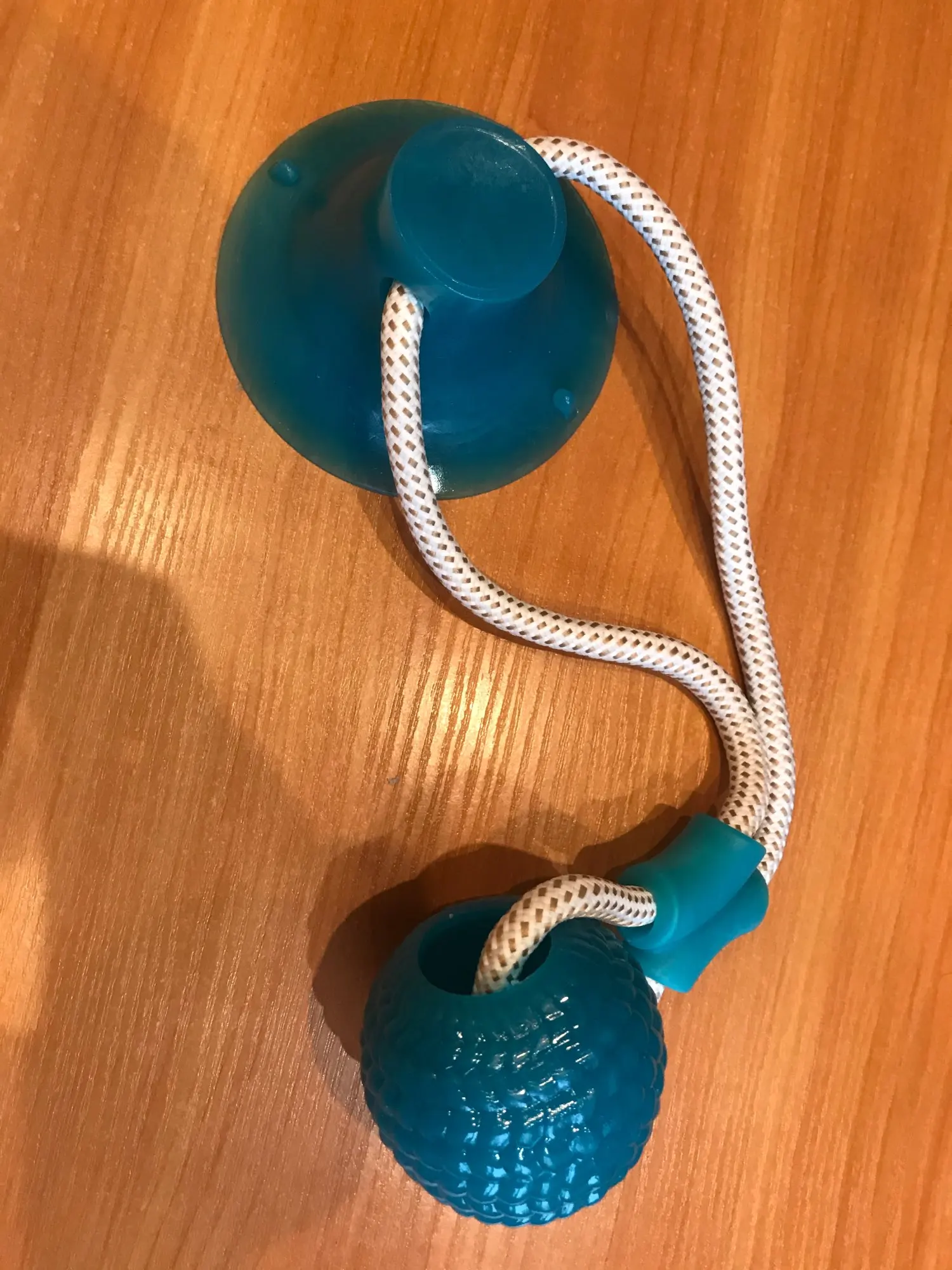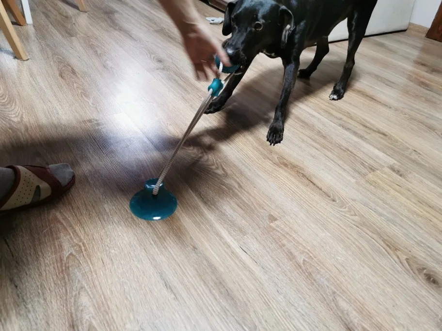игрушка интересная. собаке сразу понравилась. присоска мощная. правда собака через десять минут развязала шнурок