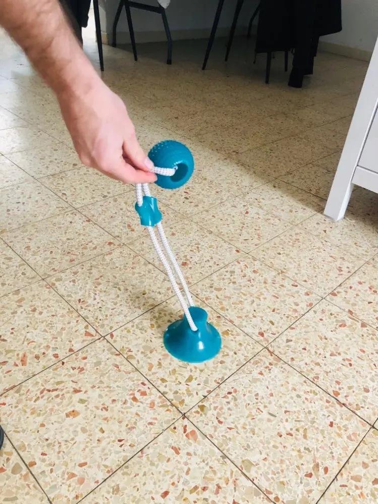 Очень хорошая игрушка. Присоска очень мощная, а материалы прочные и качественные. Я рекомендую его. (Не подходит для собак, которые расстраиваются из-за того, что не могут играть с мячом, чтобы сбросить его. Моя собака расстраивается и переживает, но игрушка очень хорошая)