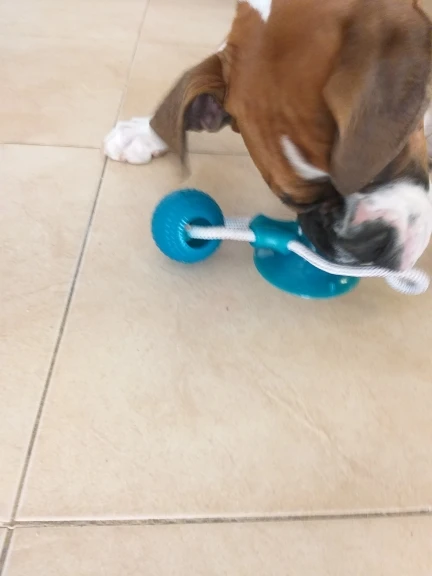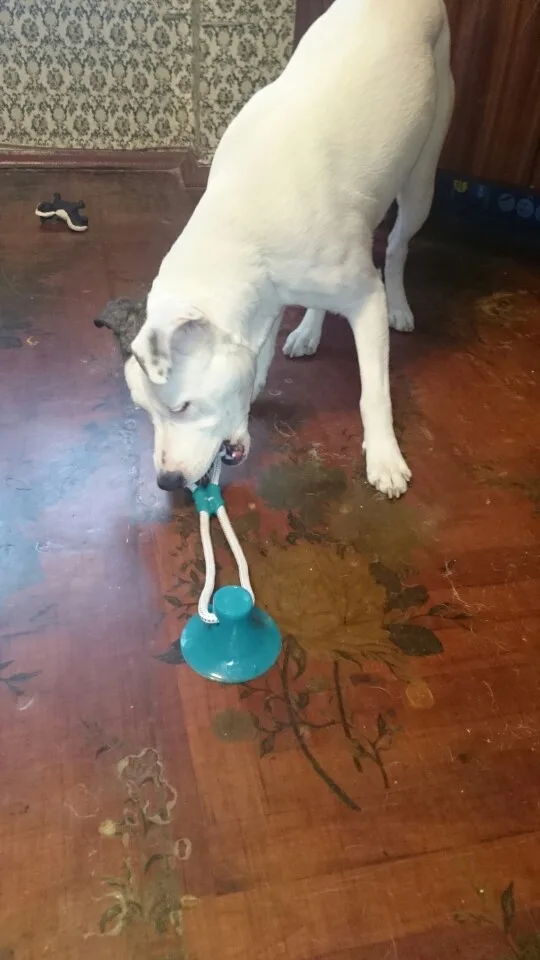 Чудо, jajajaja, присоска создает впечатляющую силу, конечно, для меня боксеры, 40 кг, это как масло, jajaja. Это по-прежнему очень хорошая игрушка, она идеально подходит, я сказал вам, моя собака вместо того, чтобы тянуть мяч, идет прямо на присоске, jajajaja.