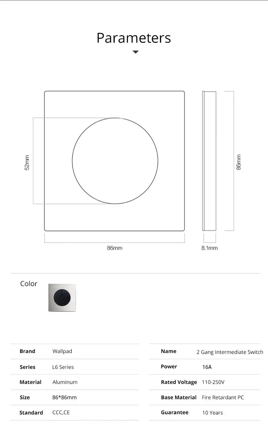Wallpad, серый промежуточный реверсивный переключатель из алюминиевого сплава серии L6