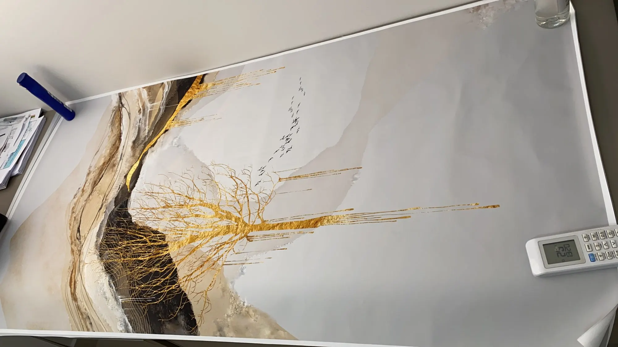 Скандинавский декор, холст с золотыми листьями, абстрактная живопис...