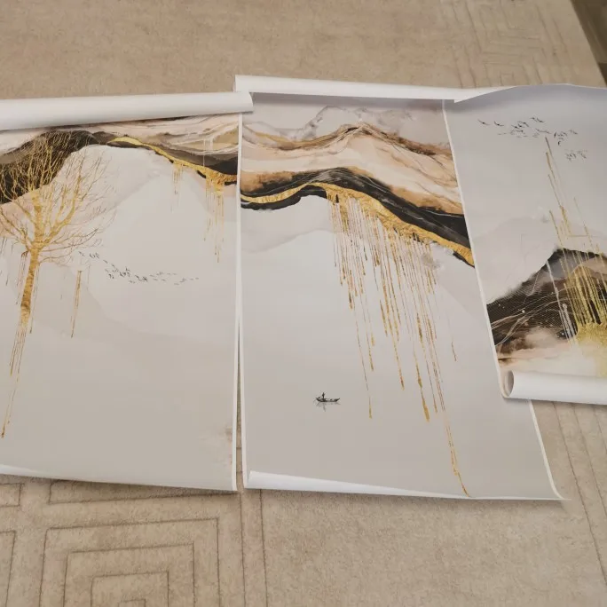 Настенная живопись, традиционный китайский горный и речной пейзаж, ...