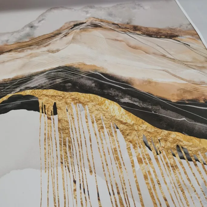 Постеры и печатные картины с абстрактным переливающимся золотым хол...