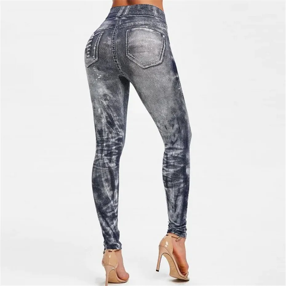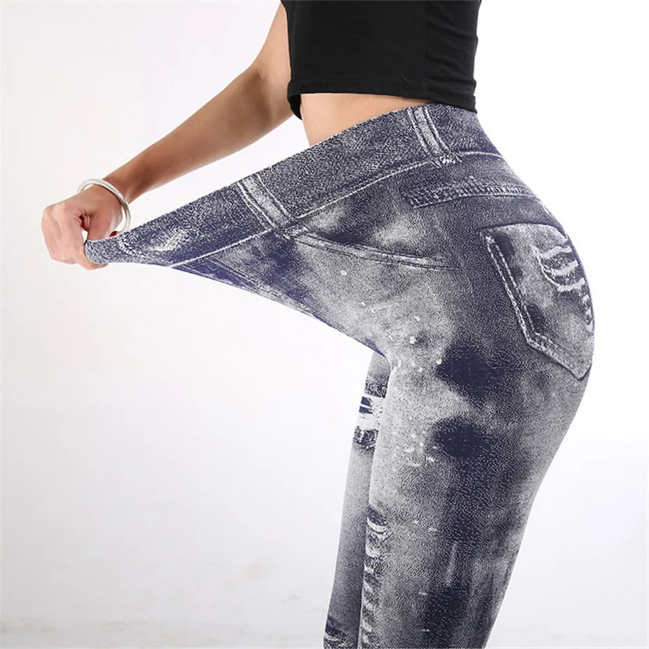 Женские леггинсы из искусственной лосины из джинсовой ткани с принт...
