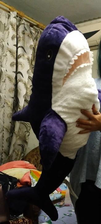 Пришло давольно быстро. Пришло на подобие мешка из пластика, что-то на подобие баульных больших вещьмешков времен 2000-х, в вакуумном пакете, заказывал акулу 140см розовую, цвет соответствует.