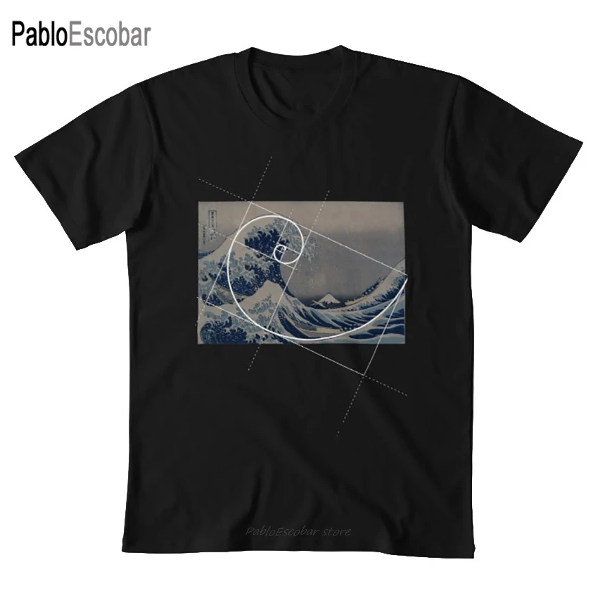 Футболка Hokusai с надписью Fibonacci, цифры fibonacci, золотистые, средние, богемные, спираль, Фибоначчи, fibonacci