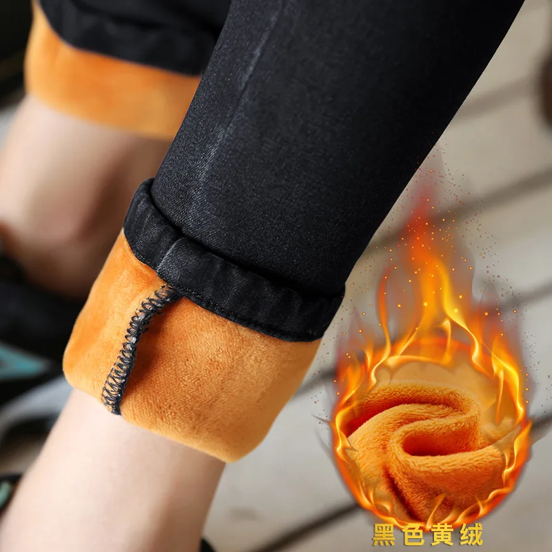 2020 Зимние флисовые бархатные джинсы-карандаш для женщин повседневные брюки с высокой эластичной талией Золотые флис изнутри теплые брюки
