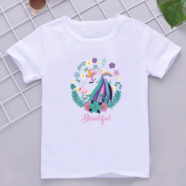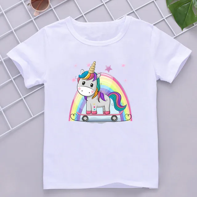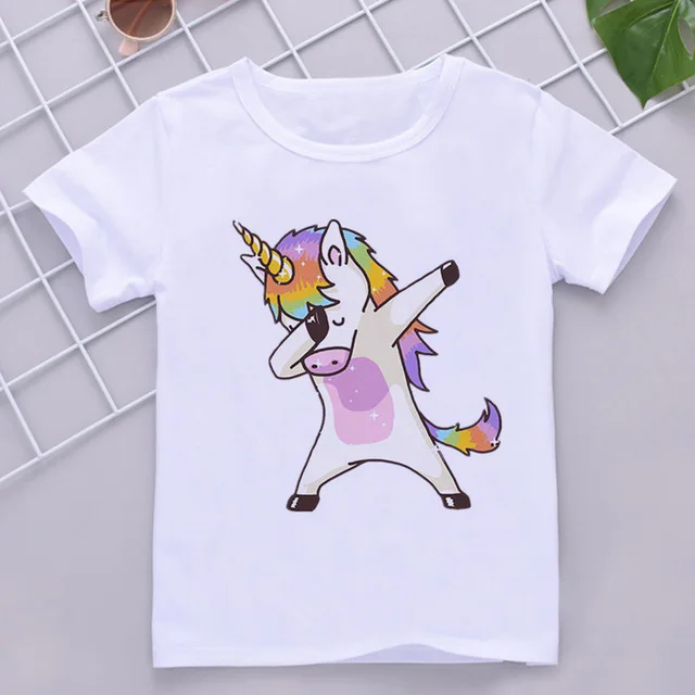 Новое поступление, футболка для девочек, летняя винтажная эстетичная футболка для девочек с единорогом, круглым вырезом и коротким рукавом, топы для маленьких девочек, футболка, одежда для подростков