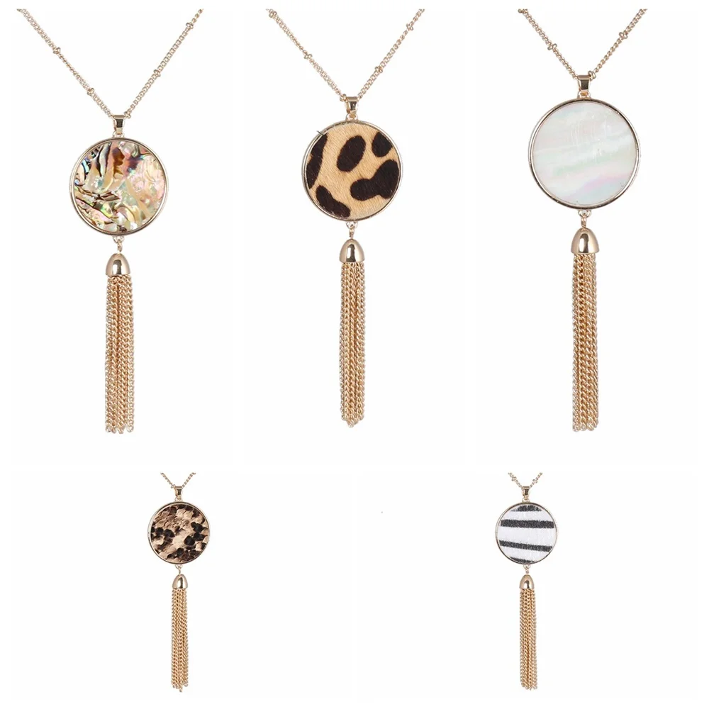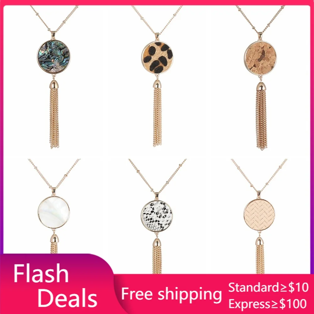 Круглая подвеска с леопардовым принтом aboone, ожерелье из змеиной кожи с кисточками и натуральным лицевым покрытием, дизайнерское Брендовое ювелирное изделие