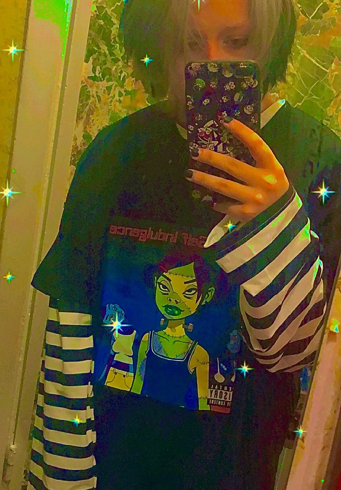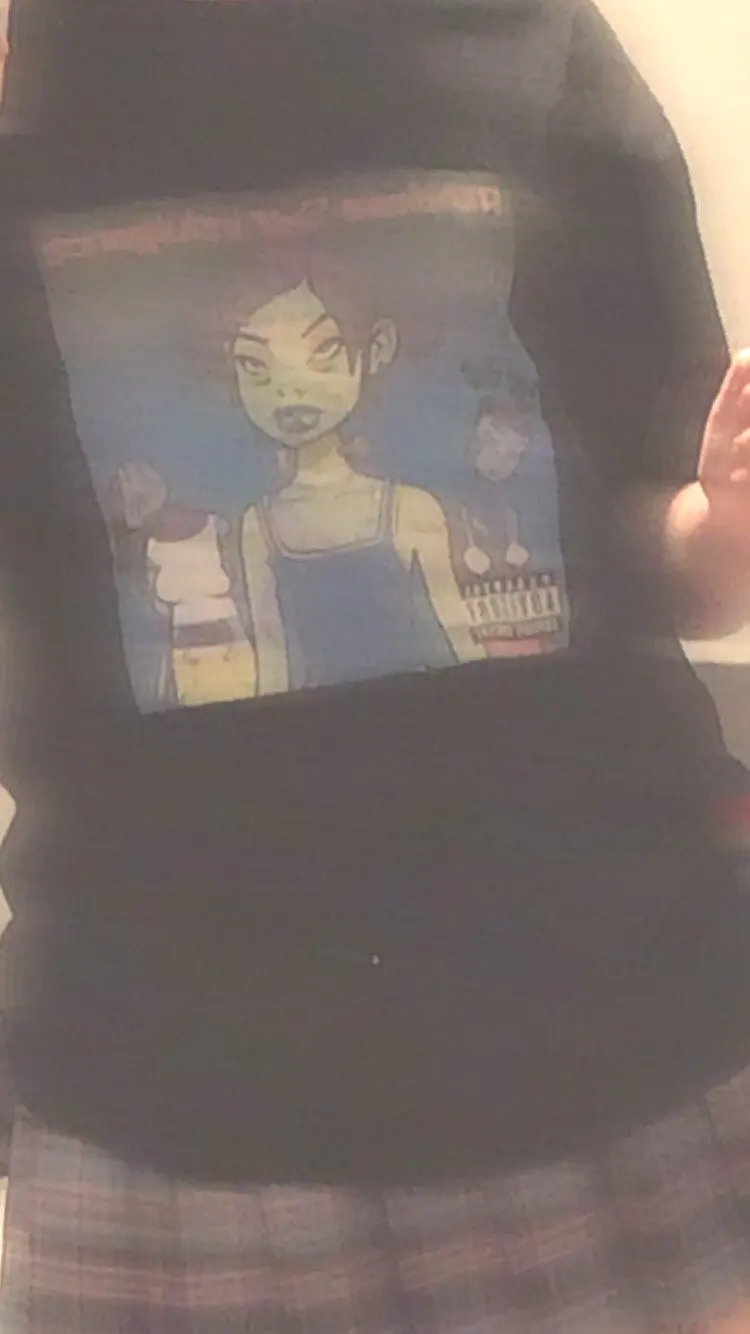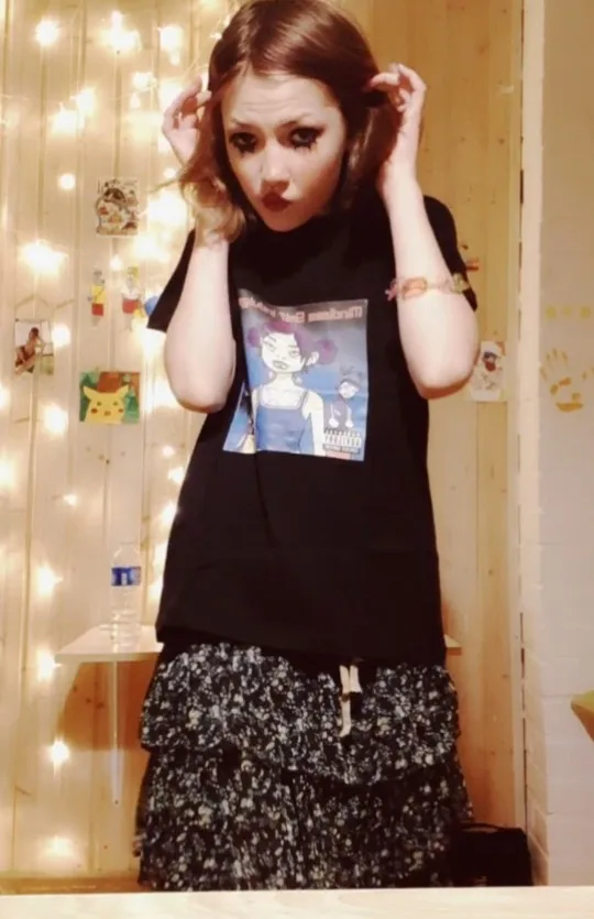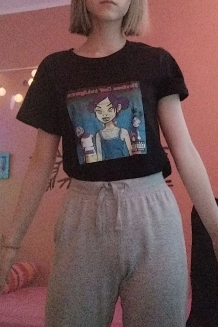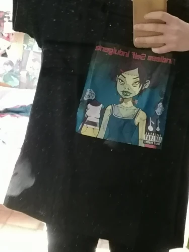 ну што сказать...заебись футболка. пришла за 23 дня в московскую область вместе с другими посылками. принт наклейка (и мне попался какой то бледный принт блин!!!), но довольно качественный. заказывала размер M на рост 159 (хз если честно какой у меня рост точно). конечно она мне велика, но так даже лучше. теперь все битчес на районе будут лав ми <з (да у меня грязное зеркало и что...)