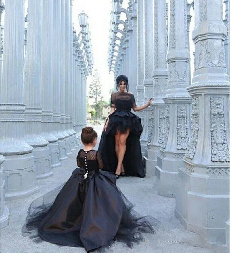 Пышное Платье с длинным рукавом для девочек, черное платье для матери и девочки, Платья с цветочным принтом для подростков, официальное платье для причастия