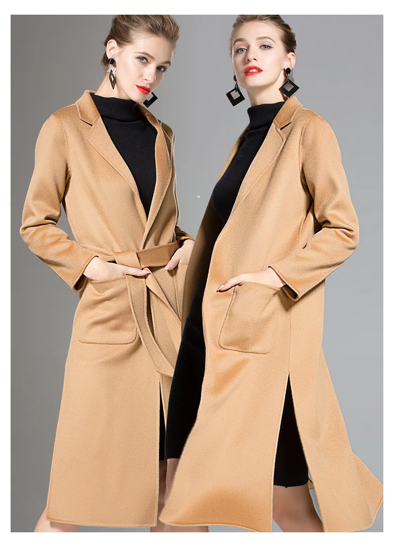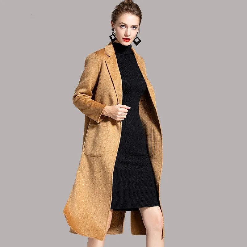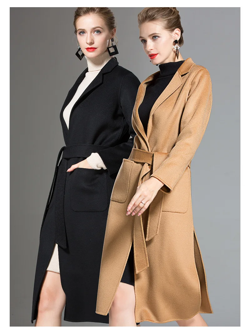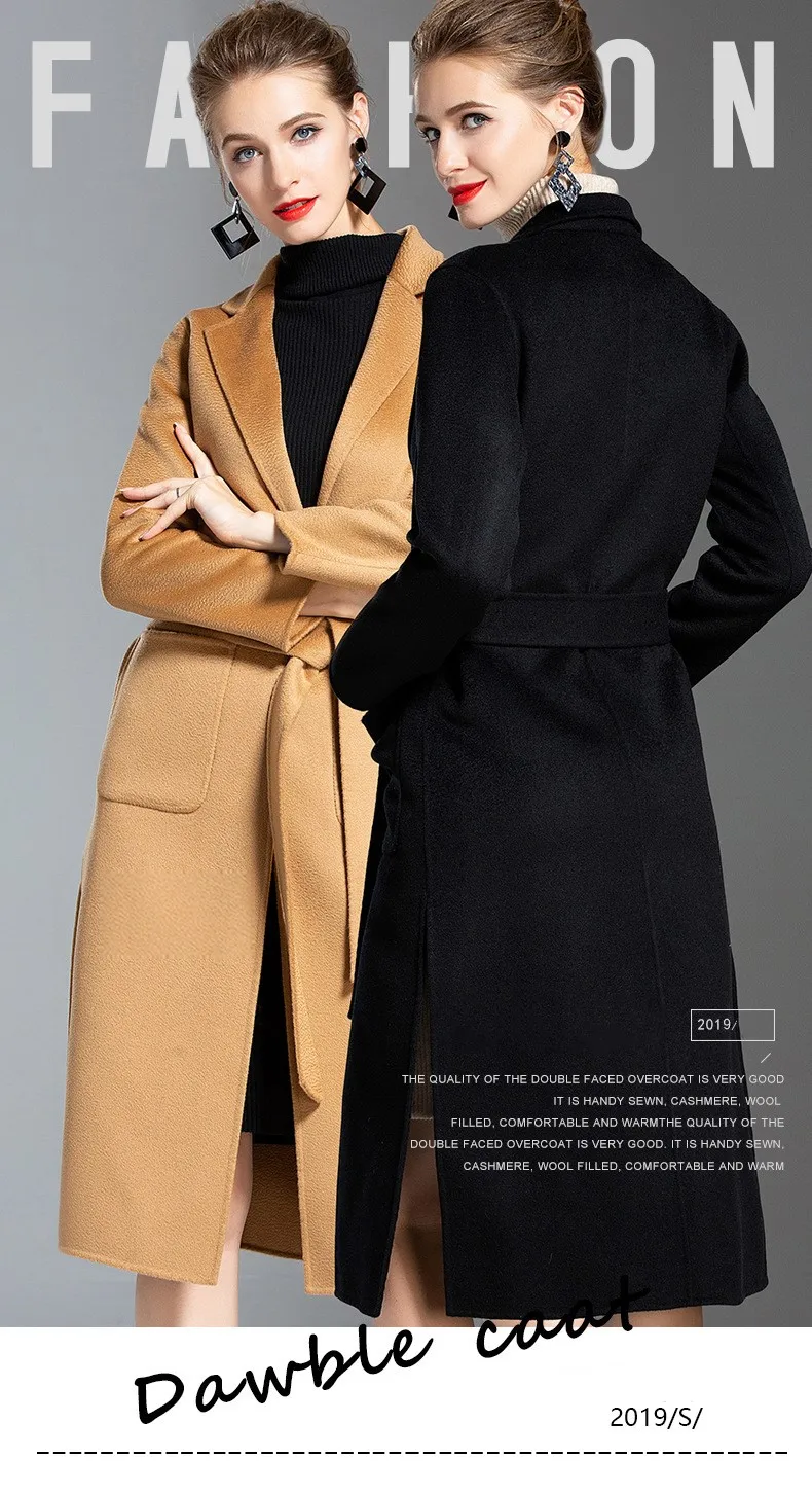 Женское кашемировое пальто, однотонное длинное шерстяное пальто в волнистую полоску, Двустороннее пальто в европейском стиле на осень и зиму