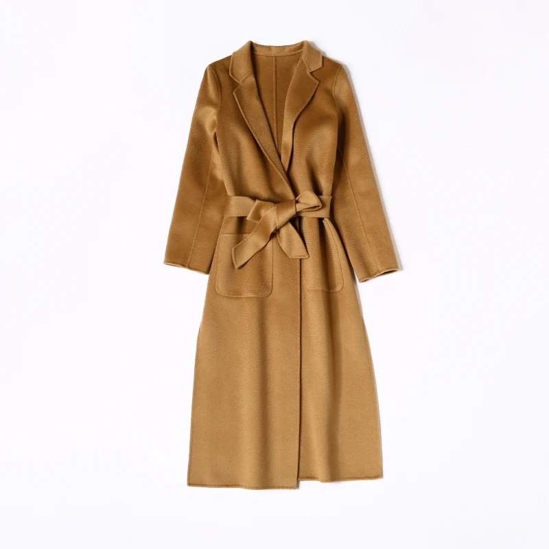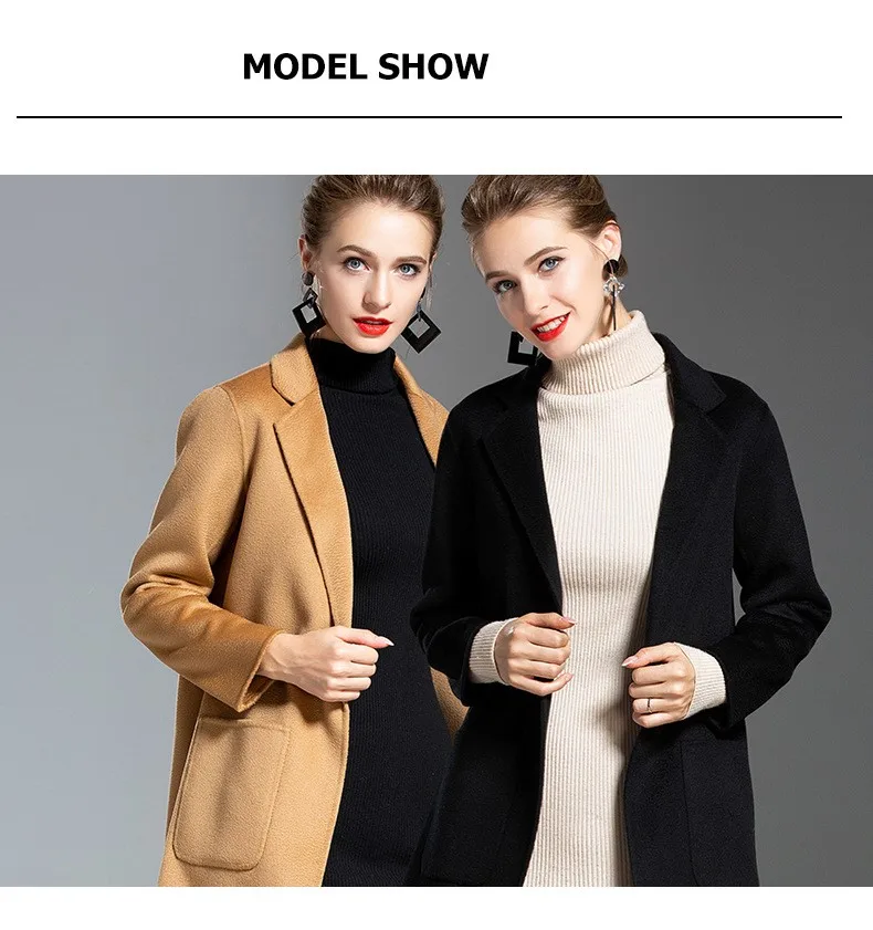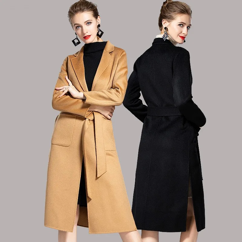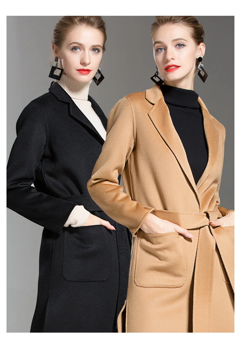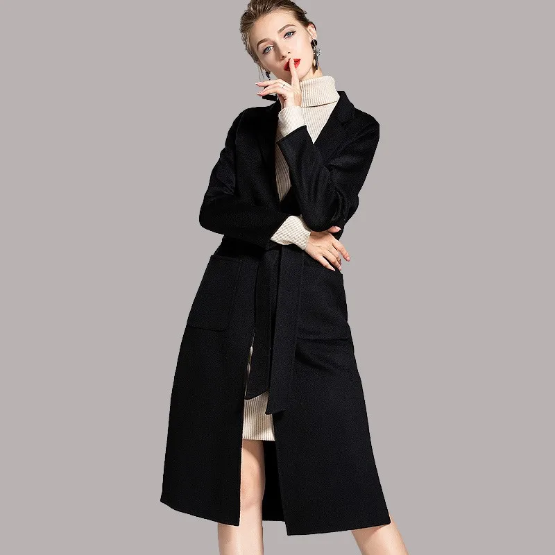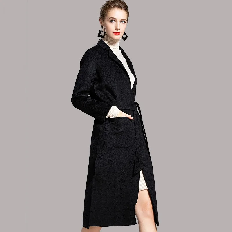 Женское кашемировое пальто, однотонное длинное шерстяное пальто в волнистую полоску, Двустороннее пальто в европейском стиле на осень и зиму