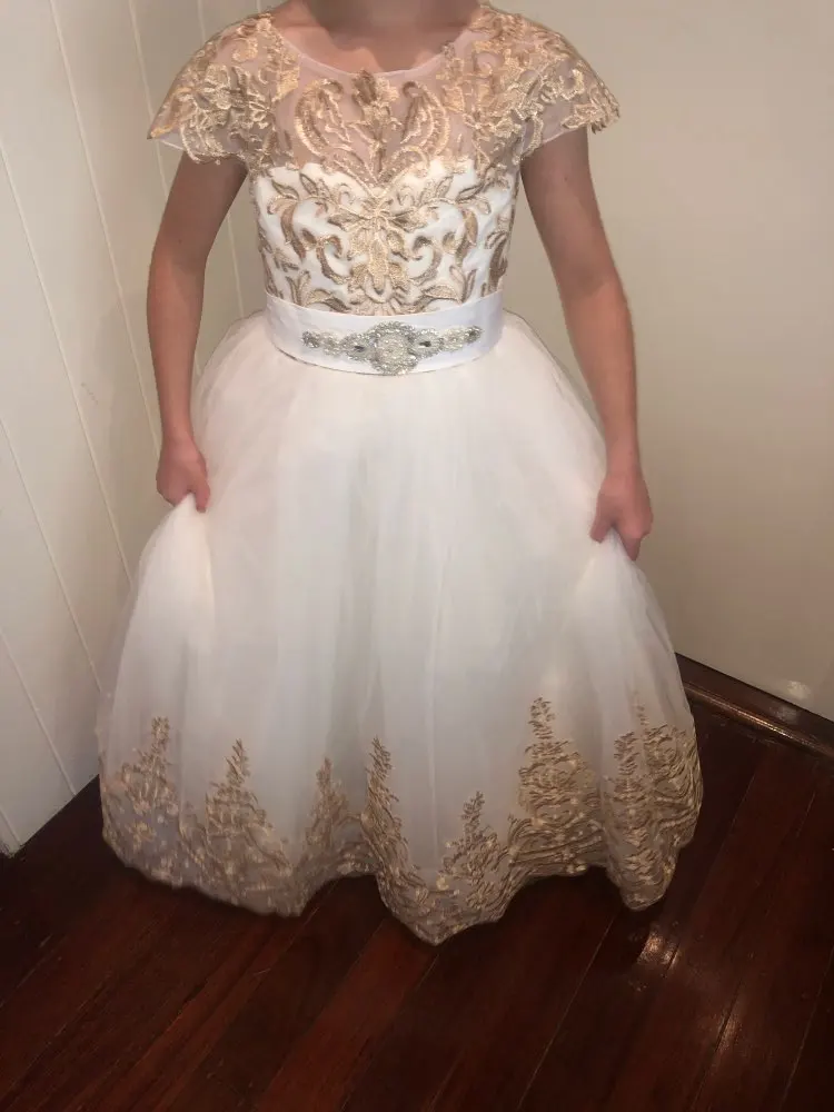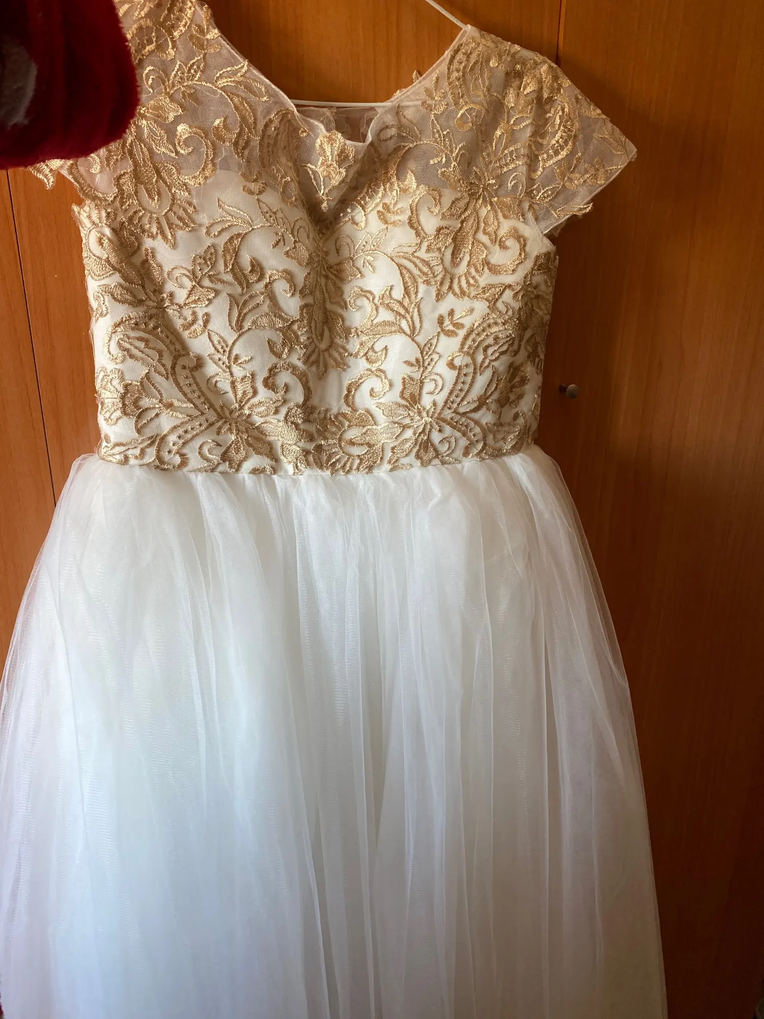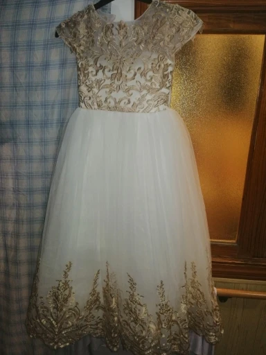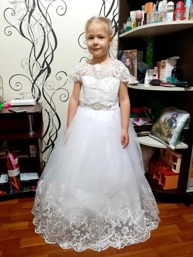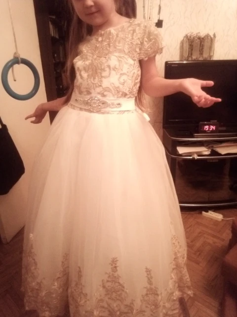 Платье великолепное. Это просто чудо. Оно очень хорошего качества. Много подьюбников, пышное и красивое. Конечно я не угодала с размером, велико, но подшить по талии не составит труда и придаст платью дополнительный объем. Дочь счастлива, Продавцу спасибо.