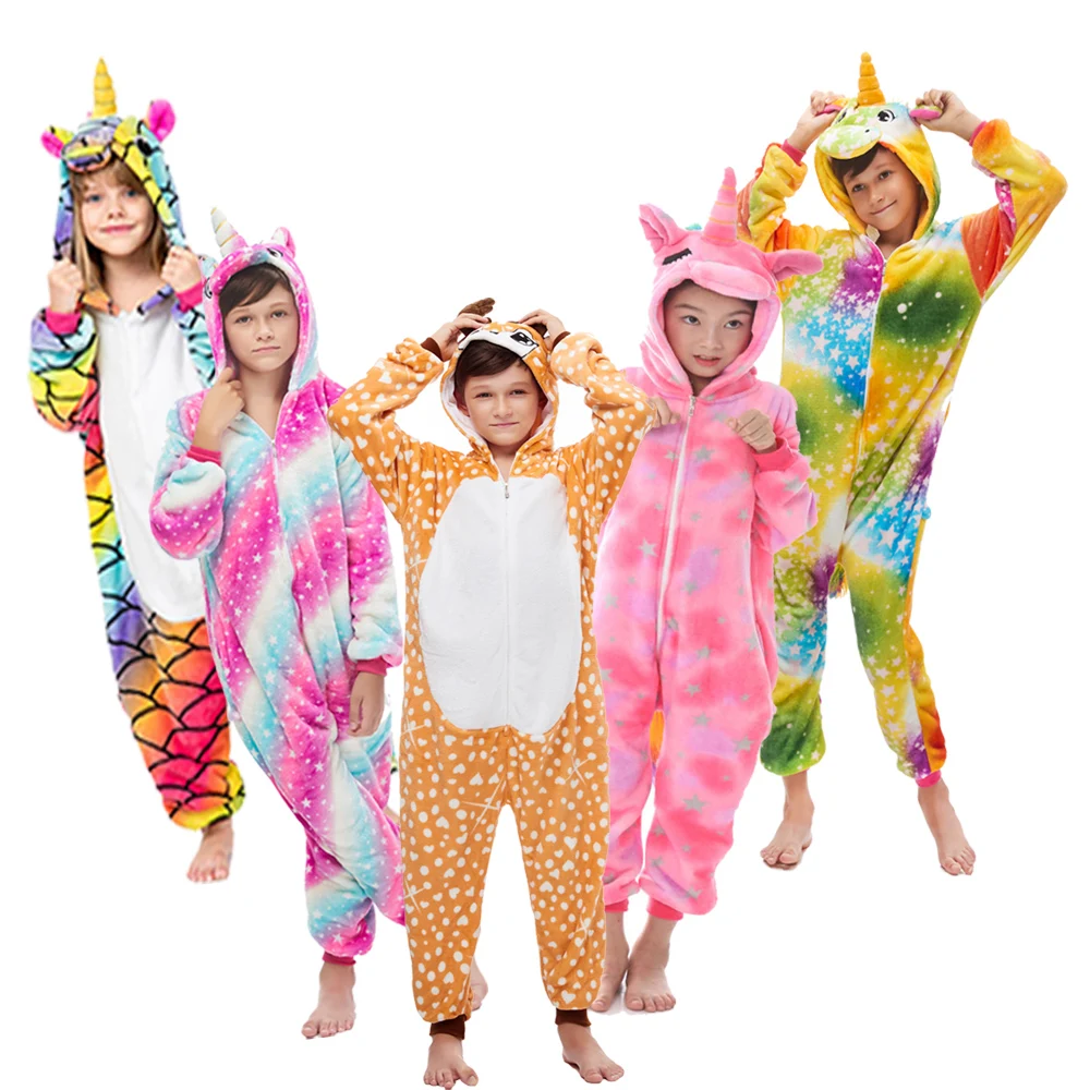 Фланелевые пижамы, детские кигуруми с единорогом для мальчиков и де...