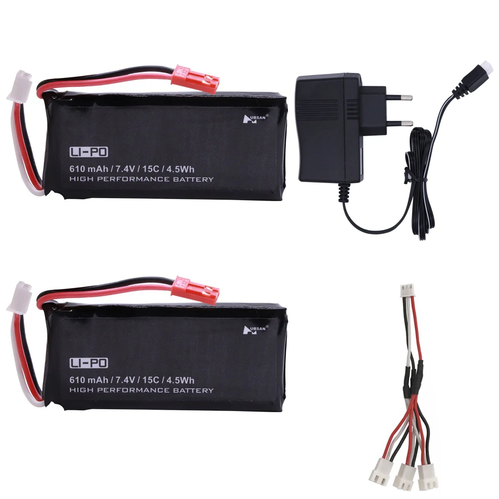 Аккумулятор lipo 7,4 В, 610 мА ч, с зарядным кабелем, для Hubsan X4 H502S H502E, 7,4 В, 15C, Вт ч, JST, для радиоуправляемых квадрокоптеров, дронов