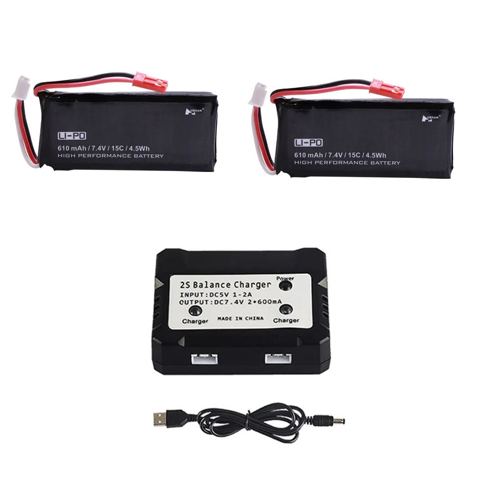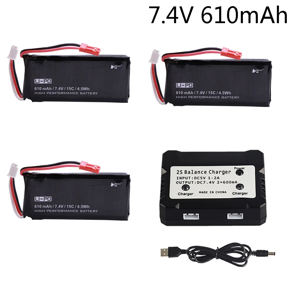 Аккумулятор lipo, 7,4 В, 610 мА ч, с зарядным устройством 7,4 В для Hubsan X4 H502S H502E H216A, 15C, Втч