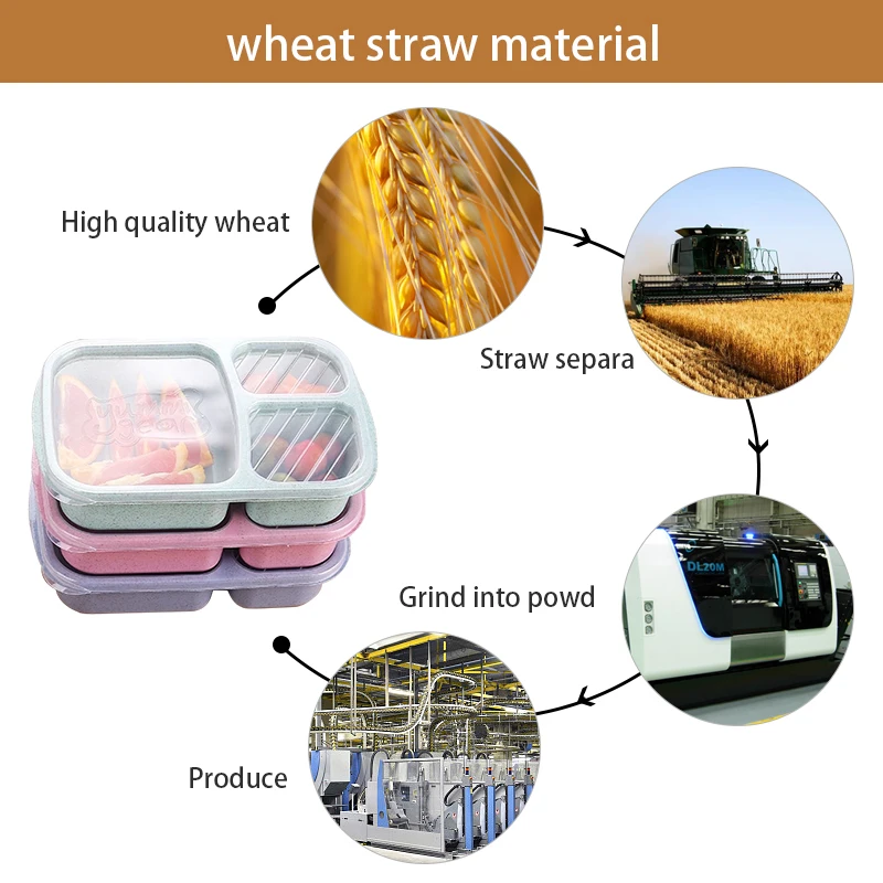 Ланч-бокс с 3 ячейками из пшеничной соломы, экологически чистый Ланч-бокс для микроволновой печи, биоразлагаемый контейнер для хранения, Ланч-бокс rilakkuma