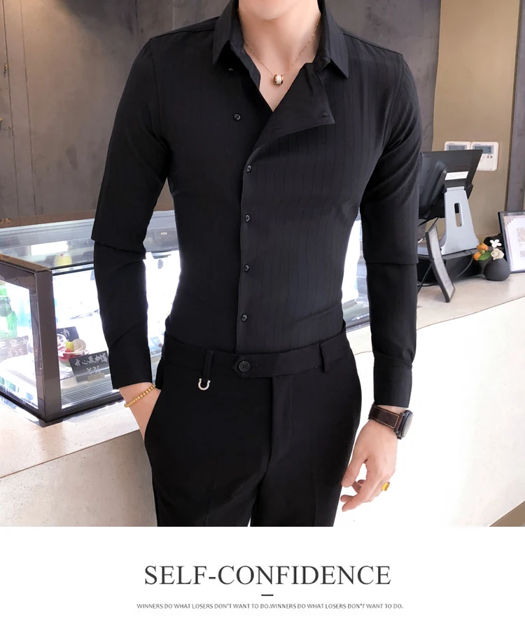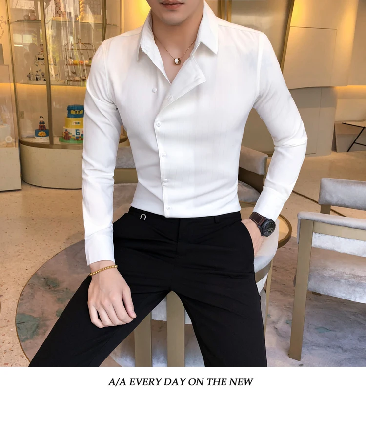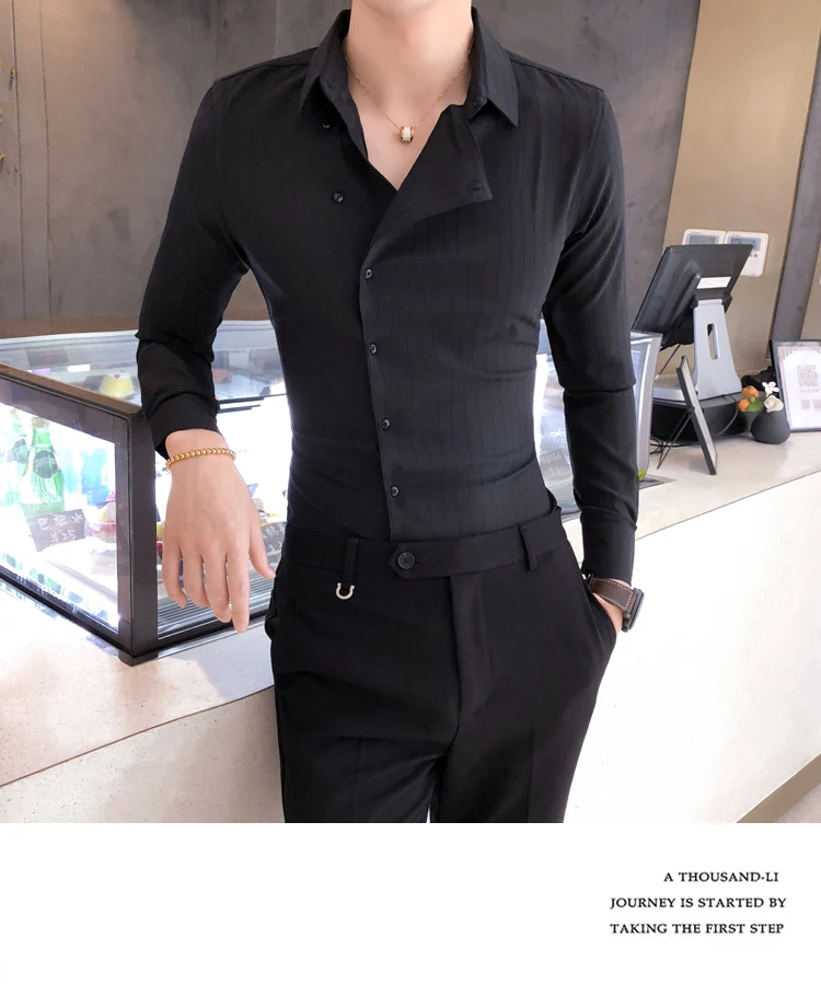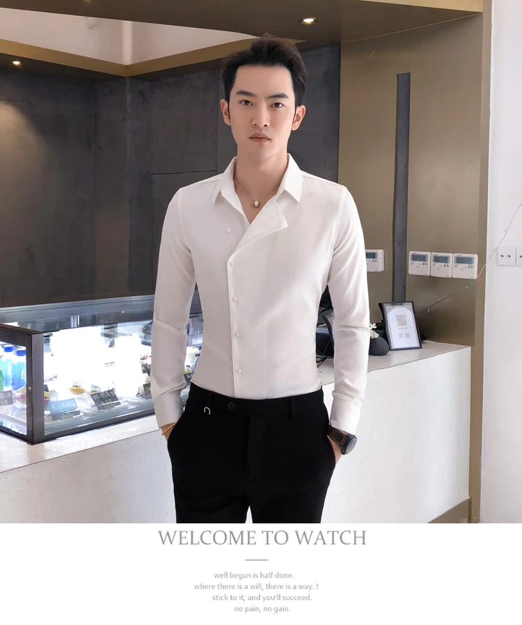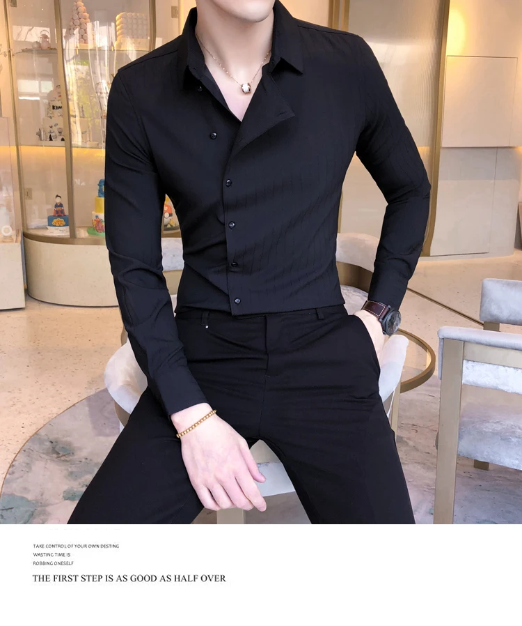 Мужские повседневные рубашки Camisa Masculina смокинг одежда Однотонная рубашка платье новый бренд приталенный крой мужские рубашки с длинным рукавом рубашки для мужчин