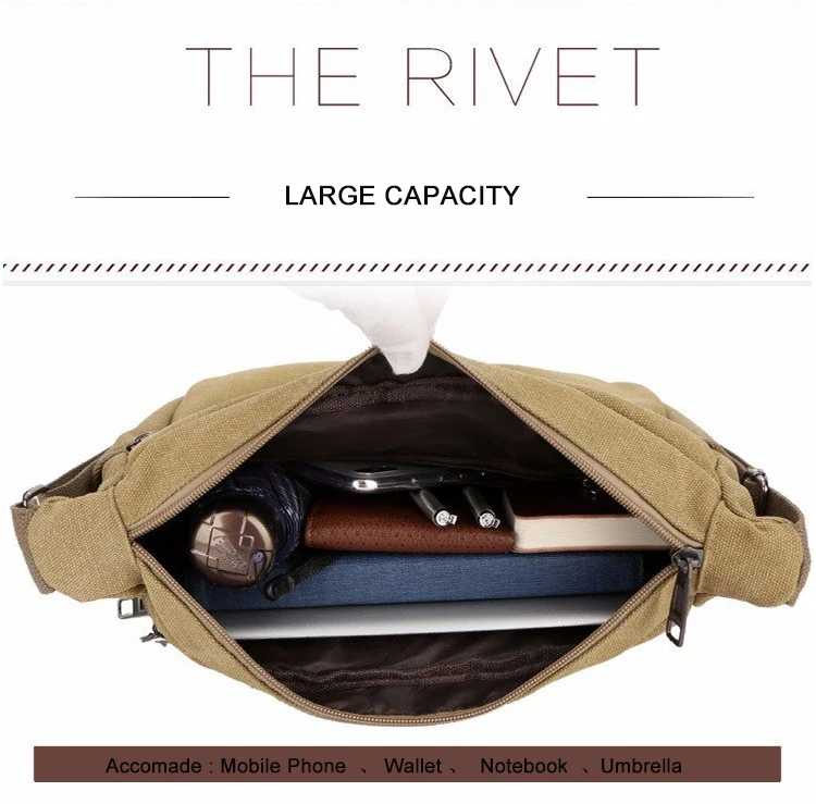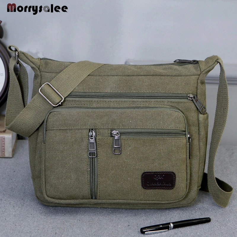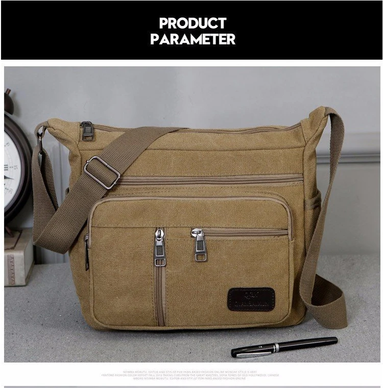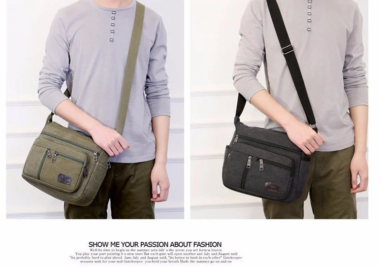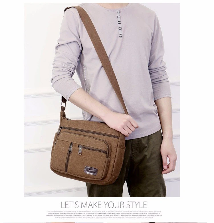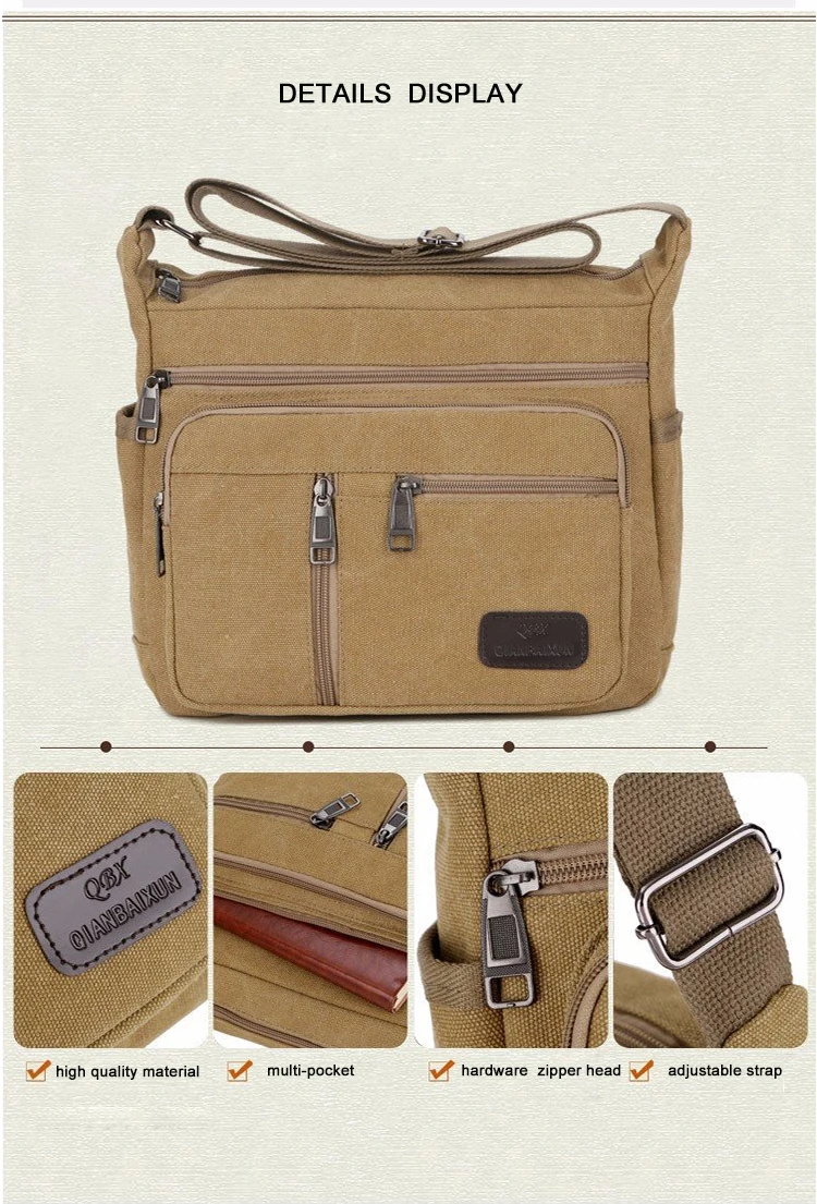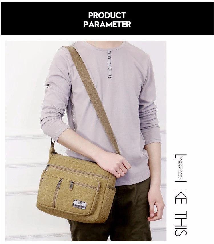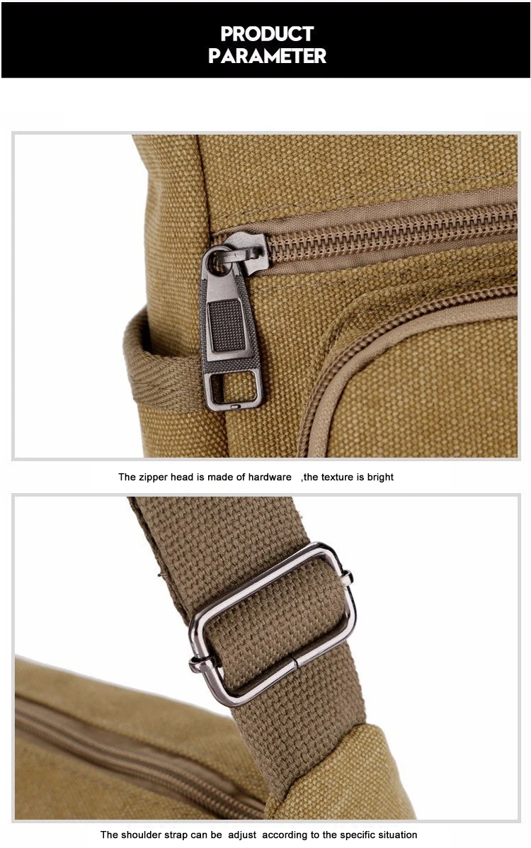 Сумка-Кроссбоди Мужская холщовая, однотонная, повседневная