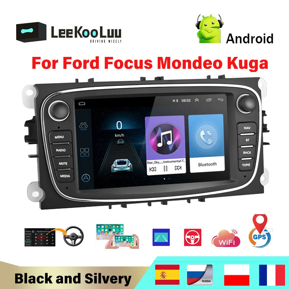 Автомобильный мультимедийный проигрыватель LeeKooLuu 2 Din, Android, GPS, Wi-Fi, Авторадио 2 Din для FORDFocusMondeoS-MAXC-MAXGalaxy, радио, задняя камера