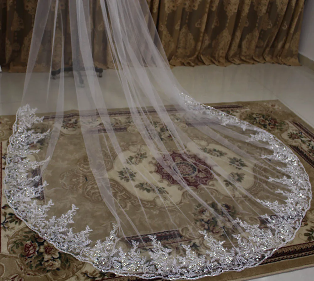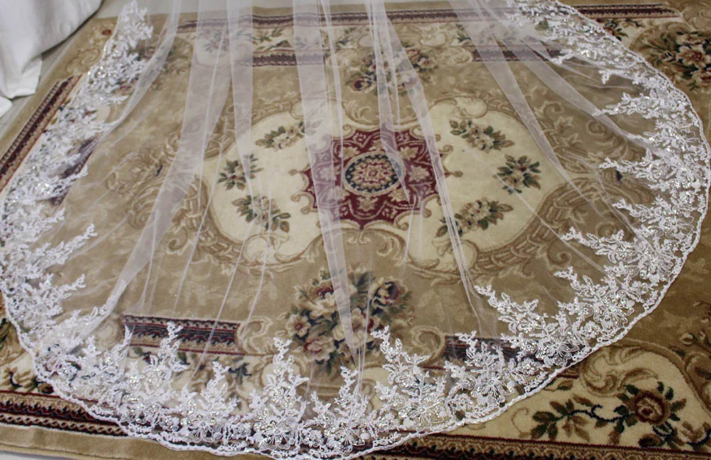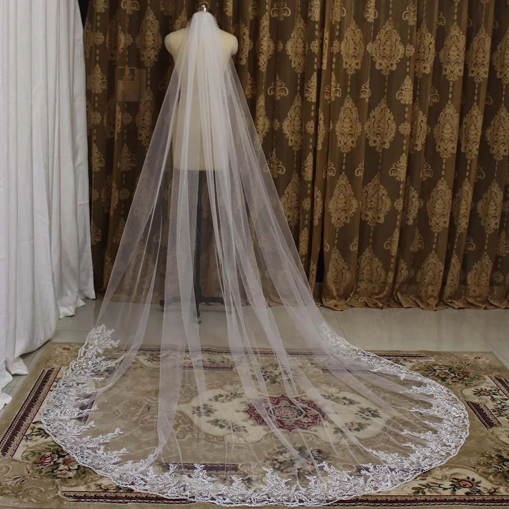 Bling Sequins частичная кружевная свадебная вуаль с гребнем 3 метра Соборная свадебная вуаль белые слоновая кость Длинные вуаль для невесты Аксессуары