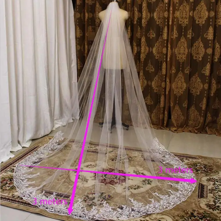 Длинные Кружевные Свадебные вуали 3 м длинная белая цвета слоновой ...