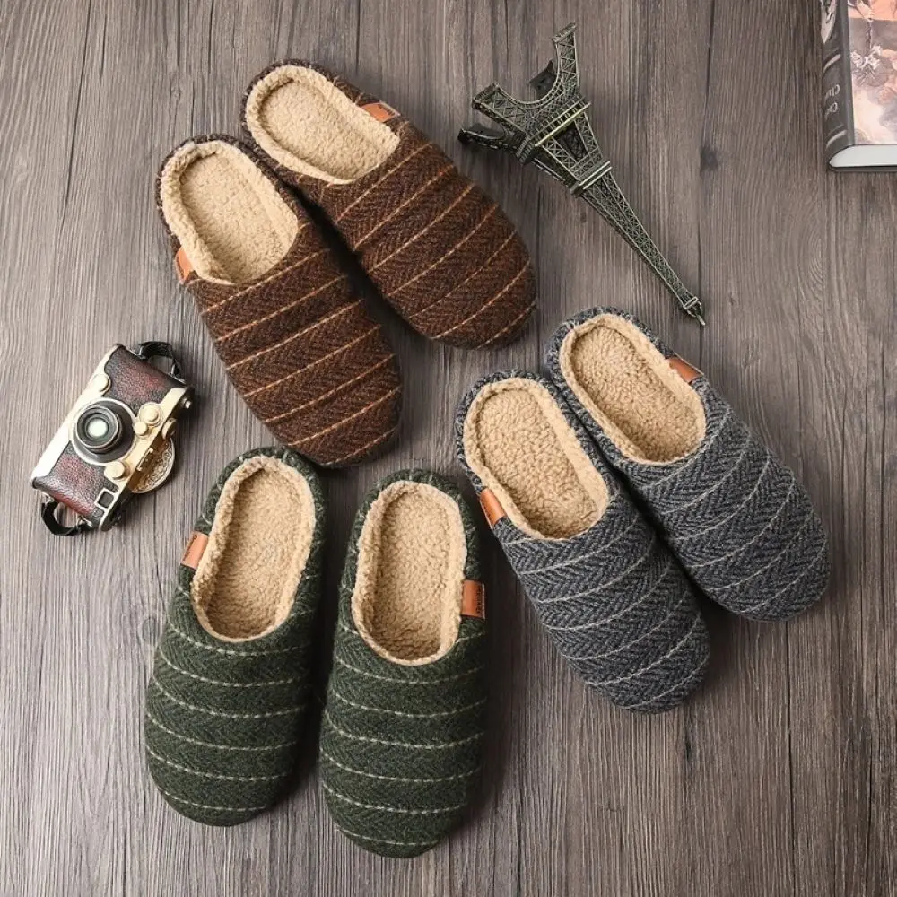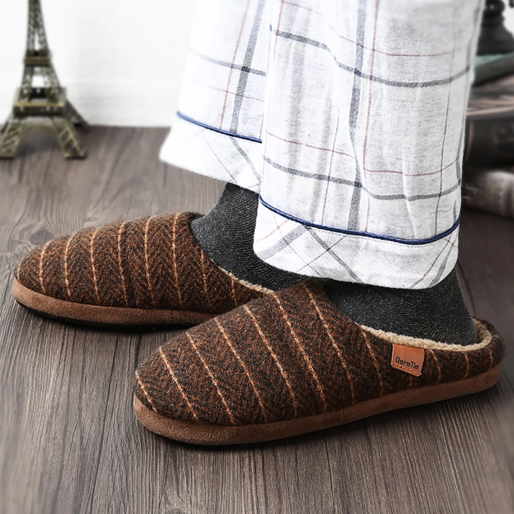 Мужские плюшевые домашние тапочки с эффектом памяти; винтажные полосатые тапочки без шнуровки; обувь для дома и улицы