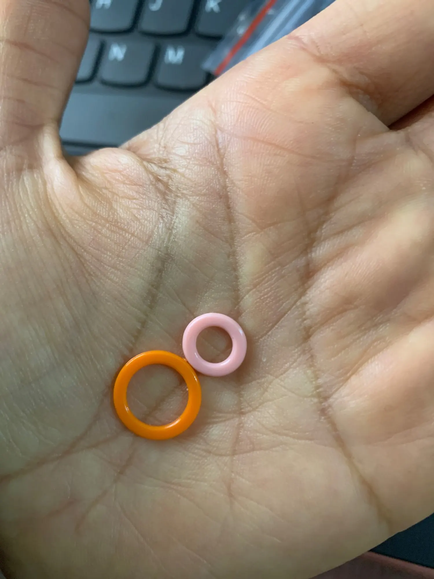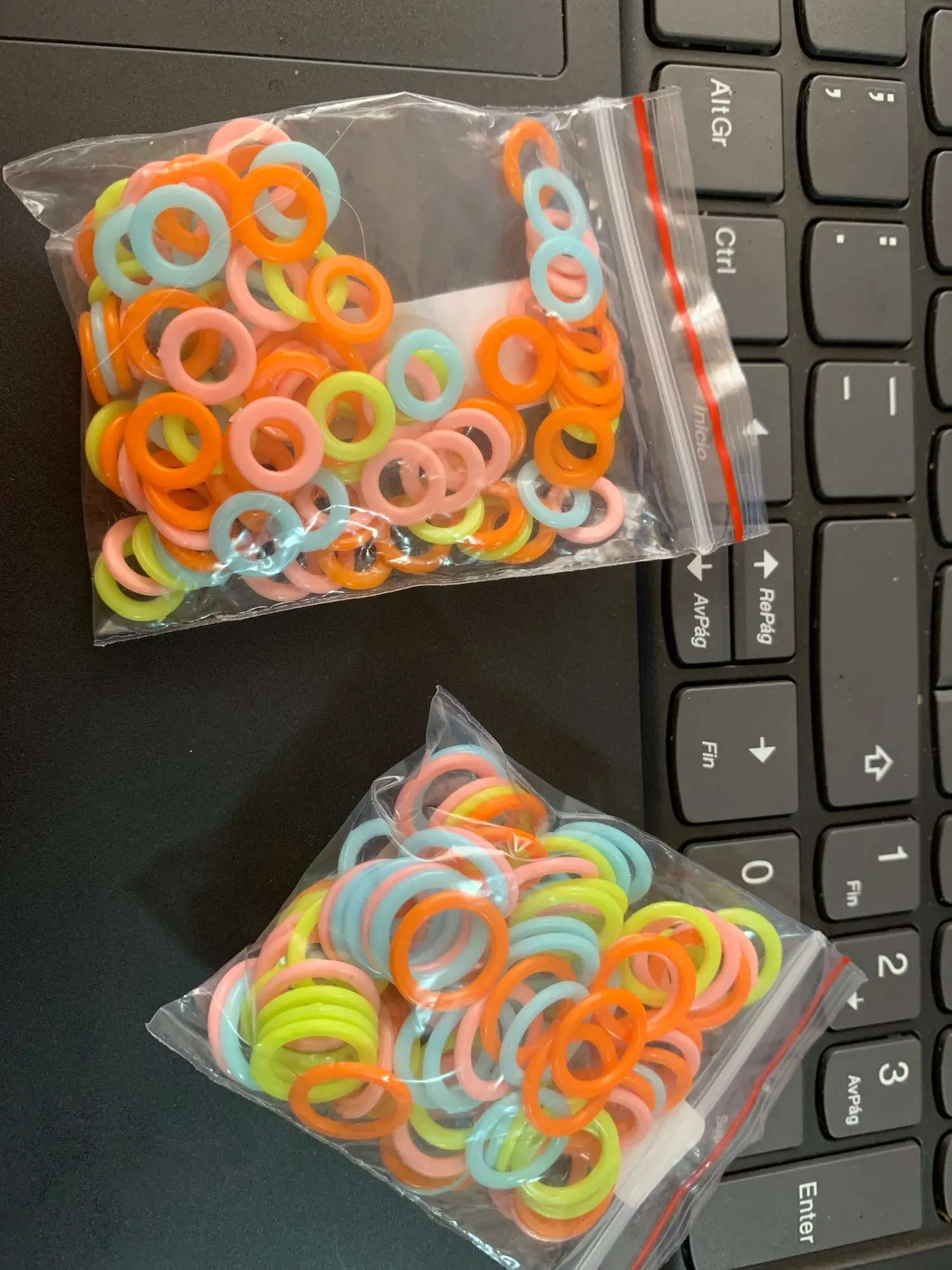 Новый брендовый товар высокого качества Цвет: в произвольном порядке Размер: как показано на рисунке Количество: 100 шт./компл. Материал: Пластик Размер: L: наружное кольцо Диаметр: 14 мм Диаметр внутреннего кольца: 10 мм S: наружное кольцо Диаметр: 10 мм Диаметр внутреннего кольца: 6 мм Посылка включает в себя: 100 вязаных колец
