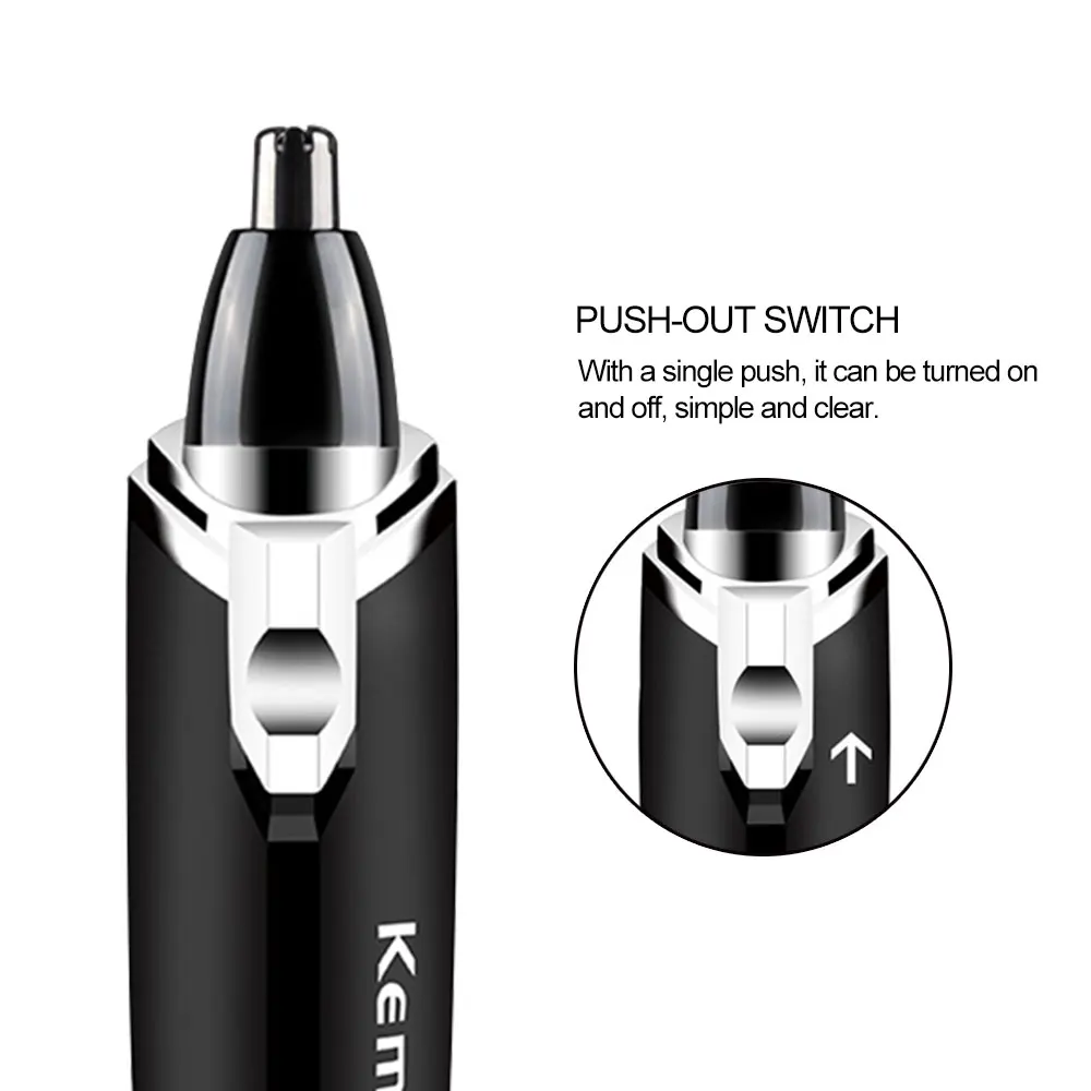 1. Высокоскоростное вращающееся лезвие из нержавеющей стали, комплексный захват на 360 градусов, используется для стрижка волос в носу, ушах и не повредит носовую полость и барабанную перепонку.