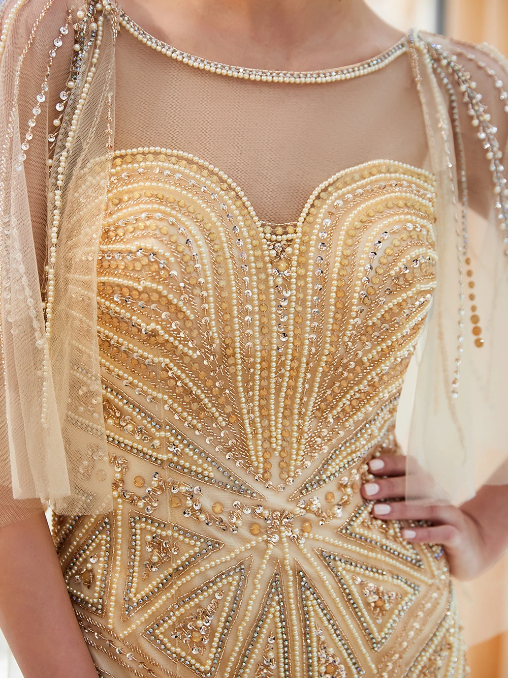 Серое вечернее платье русалки с рукавами, бисером, платья выпускного вечера из жемчуга