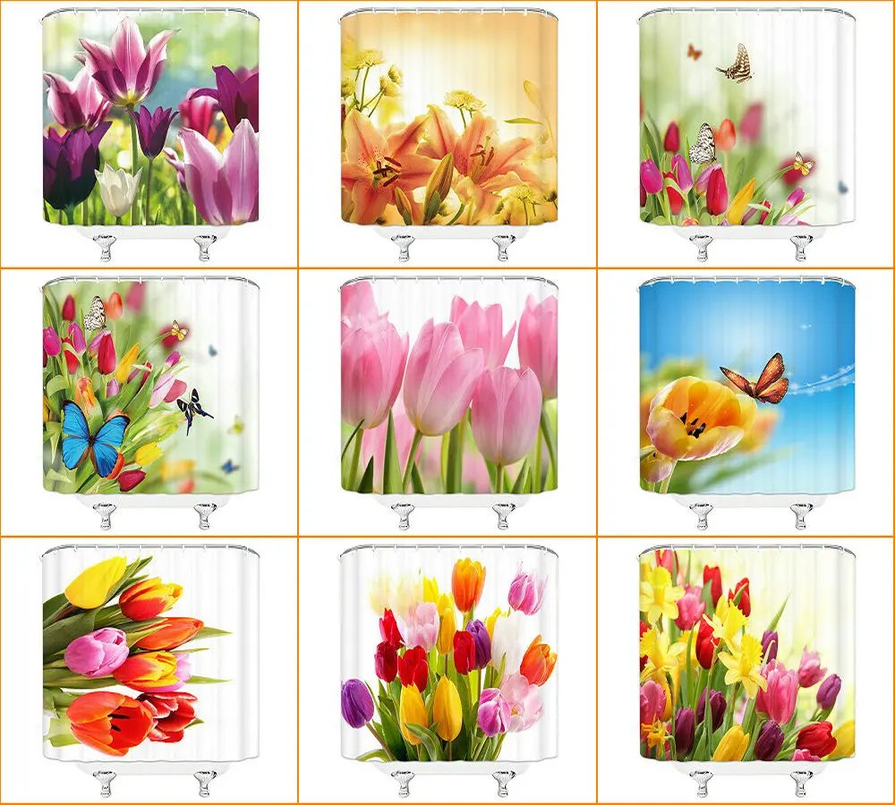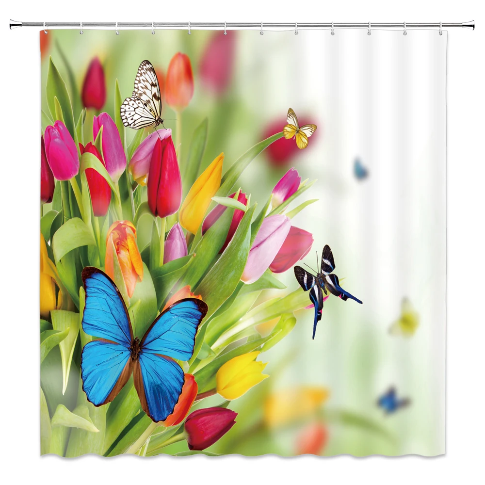 Цветочные занавески для душа тюльпан Роза цветочное растение бабочка весенний пейзаж для дома Декор для ванной из полиэстера набор штор для ванной