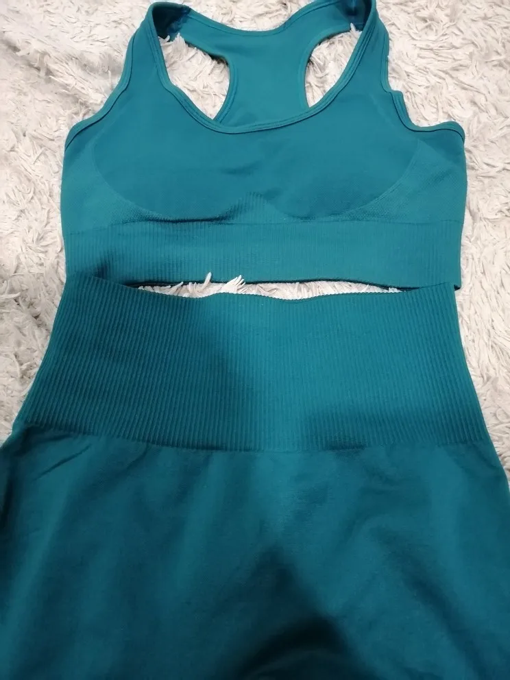 Комплект супер. Только когда сильный przysiadzie przeceswituje, и поэтому это не так. Спортивный бюстгальтер очень классный. Приятный и удобный в носке материал. Доставка занимает около 3 недель. Возможно, что купите другой.