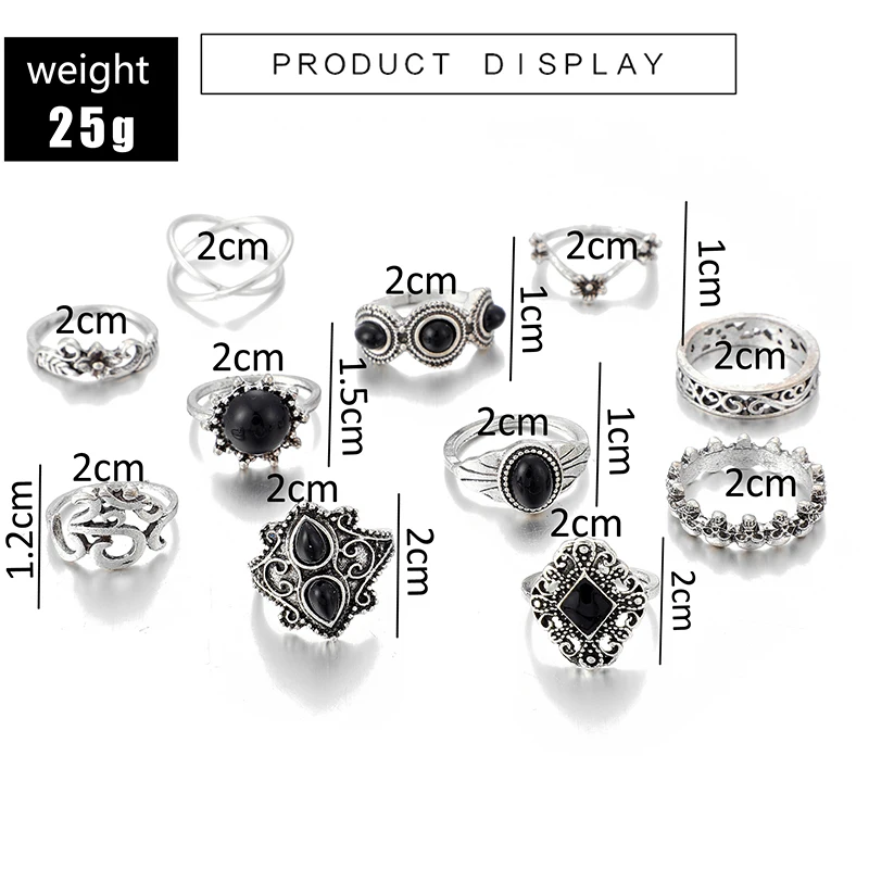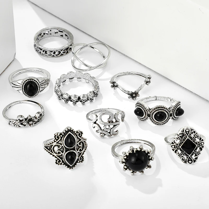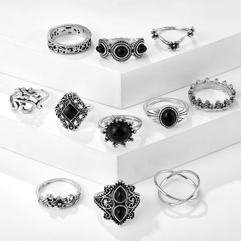 Tocona 11 шт.компл. винтажные черные стразы серебряного цвета кольц...
