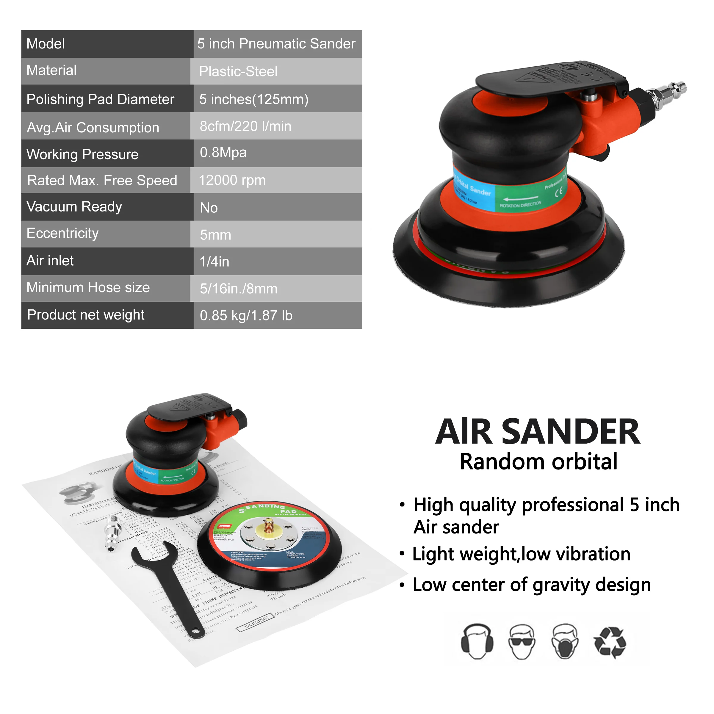 Пневматический инструмент STARY пневматическая орбитальная шлифовальная машина, 125 мм