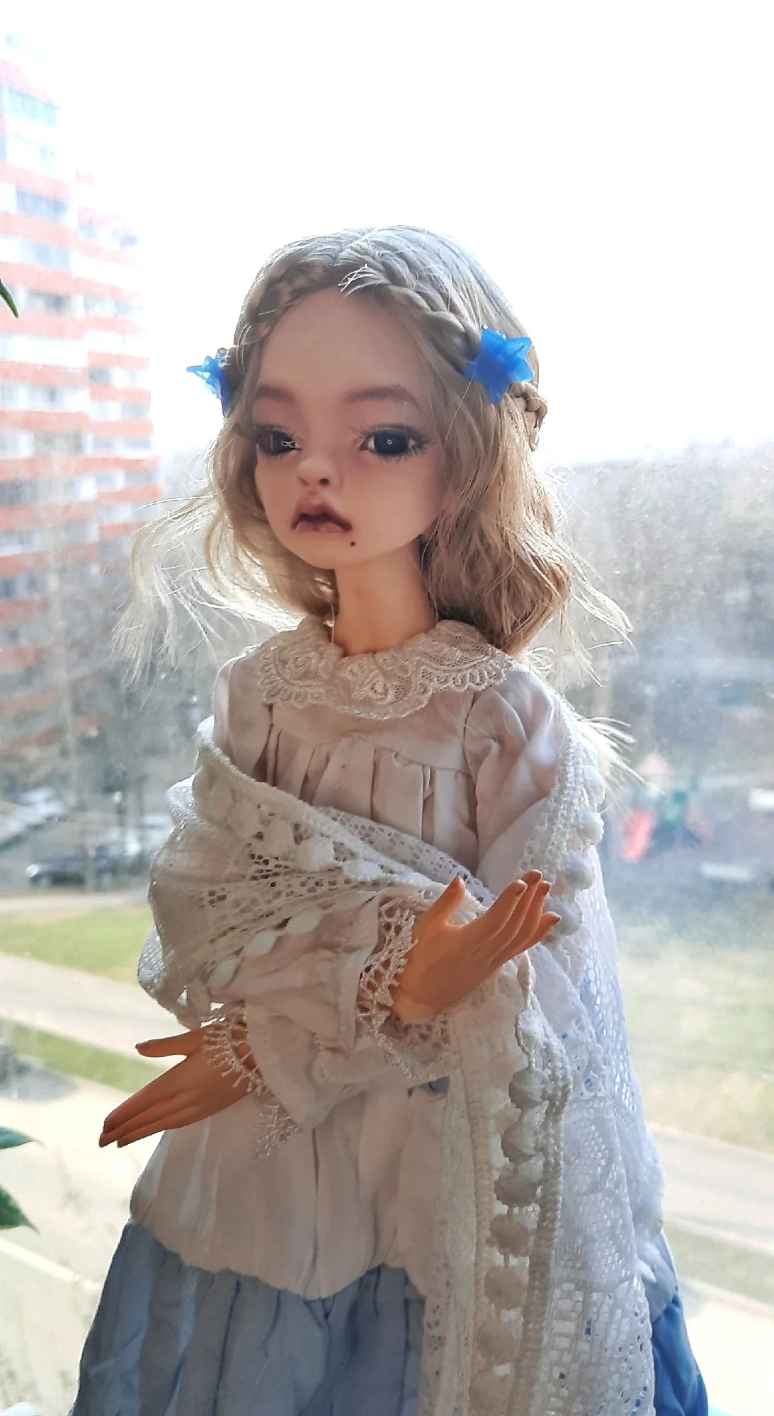Куколка просто прелесть. Высокий лоб , пухлые губки. Задняя часть черепа на магнитах, в любое время можно поменять позицию и другой цвет глаз.Зеленые глаза, продавец предлагает выбор. Кисти изящные, хорошо натянуты. Продавец внимательный, постоянно на связи . В комплект входит паспорт и губка, упакована в контейнер для кукол и 2 коробках. Сразу же заказала также ещё минифею. Быстрая доставка. Заказом и общением с продавцом очень довольна, Рекомендую куколку и продавца за его внимательность